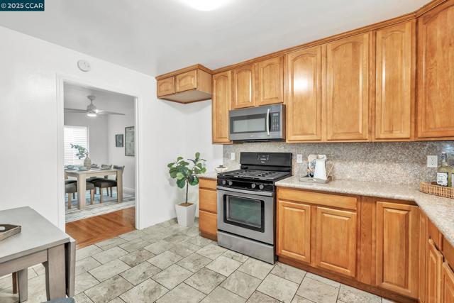 Welcome to this inviting 2-bedroom, 1-bath bungalow offering 995 sq. ft. of comfortable living space. Built in 1951, this single-level home combines vintage charm with modern updates, making it an excellent opportunity for first-time buyers, investors, or anyone seeking a cozy retreat. Step inside to discover a light-filled living area with warm, wood flooring that flows seamlessly throughout. The updated eat-in kitchen features stone countertops, a free-standing range/oven, dishwasher, and plenty of cabinet space, perfect for everyday meals or entertaining. The home sits on a level 4,400 sq. ft. lot with a fully fenced yard consisitng of a 7' school grade fence, and decrotive rod iron security gate, and front porch. Enjoy outdoor gatherings, gardening, or simply relaxing in your private backyard. Parking is convenient with an attached garage offering interior access plus additional off-street parking. This home offers the perfect balance of comfort, convenience, and value—don’t miss your chance to make it yours!