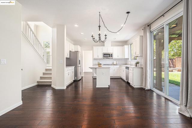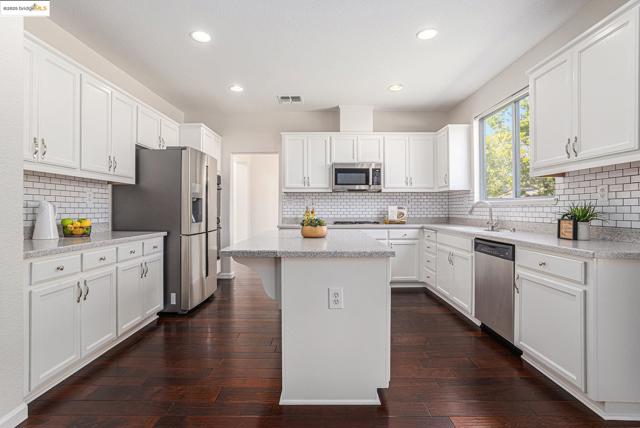 Beautifully updated home on a quiet Oakley cul-de-sac! This stunning property sits on a premium corner lot with no HOA, low property taxes, and owned solar. The exterior features fresh paint, stone pillars, a tile roof, exterior lighting, and a welcoming covered patio. Enjoy landscaped front and back yards with automatic sprinklers, pavilion-covered patio, walkway pavers, stone retaining wall, raised garden bed, and storage shed. Side Possible side yard access is perfect for a boat, bikes, or water toys. Inside boasts an open floor plan with soaring ceilings, new paint, abundant natural light, and engineered hand-scraped hardwood floors. A circular layout and double-sided staircase add elegance and flow. The kitchen offers Corian counters, an island with a breakfast bar, stainless steel appliances, a double oven, subway tile backsplash, and a walk-in pantry. The family room features a gas fireplace with a floor-to-ceiling craftsman mantel. Upstairs includes an extraordinary 5th bedroom with Mt. Diablo views, a loft (optional 6th), and upgraded bathrooms with frameless glass shower, tile, and garden tub. New carpet, dual-zone HVAC system with newer A/C unit, smart thermostats, and laundry cabinetry add comfort. Close to schools, parks, and shopping. Maybe VA Assumble Loan.
