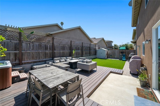 Just two blocks from Arroyo Grande and minutes from the sand, this beautifully upgraded 4-bedroom, 2.5-bathroom home offers modern convenience paired with coastal charm. From smart home features to energy-efficient upgrades, every detail has been thoughtfully designed for comfort and ease. Step inside to a welcoming entry with a Nest doorbell, abundant natural light, and a convenient powder bath. The open-concept great room features luxury vinyl plank flooring, plenty of windows with plantation shutters, and a cozy gas fireplace with a newly installed mantle. The adjoining dining area flows into the updated kitchen, complete with refinished cabinetry, granite countertops, farmhouse sink with reverse osmosis system and recently installed Samsung Bespoke smart appliances. Upstairs, the spacious primary suite offers a statement wall, peek-a-boo ocean views, and a beautifully appointed and updated en suite bath with dual sinks, soaking tub, tiled shower, and a walk-in closet. Three additional bedrooms, a full bathroom with dual-sink vanity, and built-in hallway cabinetry provide plenty of space for family or guests. Enjoy energy independence and a significantly reduced carbon footprint with the fully owned solar panels and a Tesla Powerwall, ensuring a reliable, low-cost power source and seamless backup during any outage. The 2-car garage features finished walls and ceilings, a tankless water heater, EV-ready 220V outlet, overhead storage, and a water softener. Outdoor living is just as inviting, with an expanded Trex deck, recently installed backyard turf, and a hot tub; perfect for relaxing after a day at the beach. Positioned alongside one of the community’s two beautifully designed parks, the home provides seamless access right from the front porch. Additional highlights include smart home features such as a Nest thermostat and Arlo security cameras, recessed lighting with updated fixtures throughout, and a convenient laundry room with cabinetry, shelving, and a granite countertop. The home is also ideally located near the coast, just minutes from beaches, shopping, and dining. This move-in ready home combines style, function, and location; all just moments from the Central Coast shoreline.