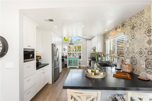 Rare single level home with a VIEW! You will not want to miss the opportunity to call this 3 bedroom and 2 bathroom home your own. Remodeled and updated thoroughout, the open floorplan invites you in. Dual skylights and three sliding doors allow the natural light to flow into the living space. Paid solar and water softener keeps your cost ownership and maintenance down. Large view lot is perfect for entertaining. Enjoy the private the backyard from the large covered patio. One of the best neighborhoods in Oceanside, this is a hidden gem with NO HOA! Beautiful kitchen with solid wood cabinets and quartz countertops, boasts a breakfast bar and substantial storage. You will love all this home has to offer!