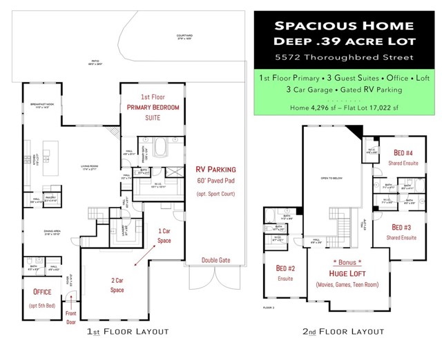 Welcome to your dream home in the desirable Marisol at Ocean Ranch! This property offers a versatile multi-family floor plan, perfectly suited for diverse lifestyles. One of its standout features is the spacious downstairs primary bedroom suite, which includes dual sinks, a soaking tub, and a walk-in closet for ultimate comfort and privacy. Encompassing 4,296 square feet on a generous 0.39-acre lot, this home features 4 bedrooms and 3.5 bathrooms, designed for flexibility. The adaptable layout includes an office, family room, formal dining area, and a loft/media room to cater to various needs. The expansive, flat, and usable lot is a rare gem, offering endless possibilities for outdoor living—a perfect canvas for a pool, sports court, or garden. The backyard is ideal for entertaining or creating your personal oasis. Additional features include a spacious walk-in laundry room, a three-car walkthrough garage, and a 60-foot finished RV pad with 30-amp electrical service, all tucked securely behind a decorative gate. Upon entering, you'll be impressed by high ceilings and abundant natural light from the western exposure. The great room, with its soaring 25-foot ceiling and cozy gas fireplace, is perfect for relaxation. The chef's kitchen is an entertainer's delight, featuring a large breakfast bar, breakfast nook, butler's pantry, granite countertops, a double oven, and a gas cooktop. Marisol is an equestrian-friendly community with horse-permitted zoning, integrated trails, and amenities for horse lovers and outdoor enthusiasts. Enjoy nearby Guajome County Park, the scenic San Luis Rey River Trail, Melba Bishop Park’s pickleball courts, and two top-tier golf courses: Arrowood Golf Club and The Golf Club of California. Located just 8 miles from Oceanside Harbor, this stunning executive home offers an ideal blend of luxury and convenience. Oceanside caters to all interests, whether it’s walking, biking, surfing, golfing, or simply enjoying the cool westerly breeze at home. Don’t miss out on this incredible opportunity to live in Marisol Ocean Ranch Estates within the community of Hi Hope Ranch in Oceanside, bordered to the north by the San Luis Rey River. All dimensions are approximate and not guaranteed.