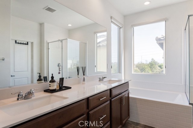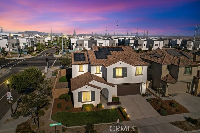 Welcome to this stunning residence set on a desirable corner lot with manicured landscaping and thoughtful design throughout. Go inside to a spacious open-concept great room that flows seamlessly into the beautifully upgraded kitchen, complete with quartz countertops, walk-in pantry, built-in range and hood, and a center island with bar seating—perfect for gatherings and entertaining. The main level features a junior suite bedroom with private bath, an additional office (6th bedroom option), and a convenient half bath. Upstairs, enjoy a versatile loft space, plus 4 generously sized bedrooms and 2 bathrooms, including the primary suite with dual-sink vanity, soaking tub, separate shower, and walk-in closet. An upstairs laundry room adds convenience. Outside there's a covered backyard patio with low-maintenance artificial turf while taking in scenic mountain views. The home also features a leased solar system for energy efficiency and a water softener hook up in the garage. Located in a well-maintained HOA community offering covered picnic areas with BBQs, manicured grounds, and sidewalks. A move-in-ready gem with space for everyone—don’t miss it!!