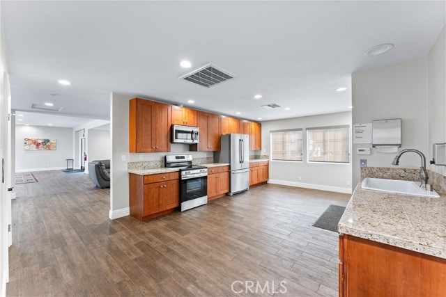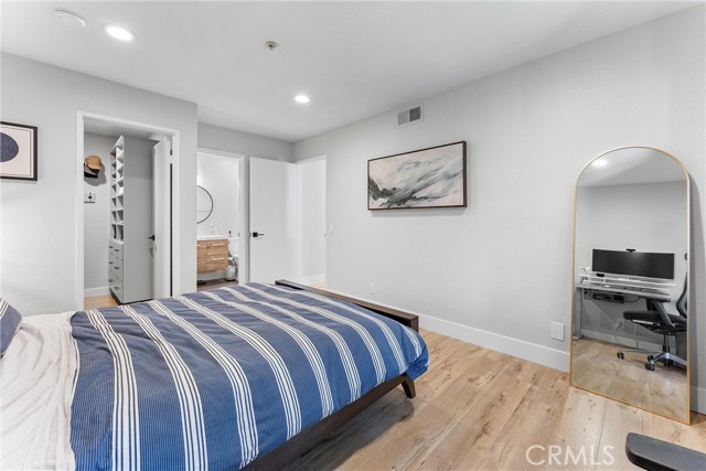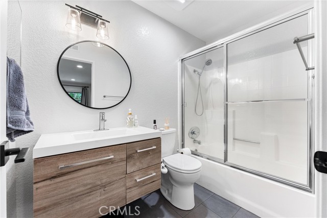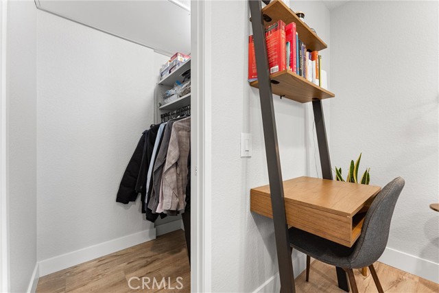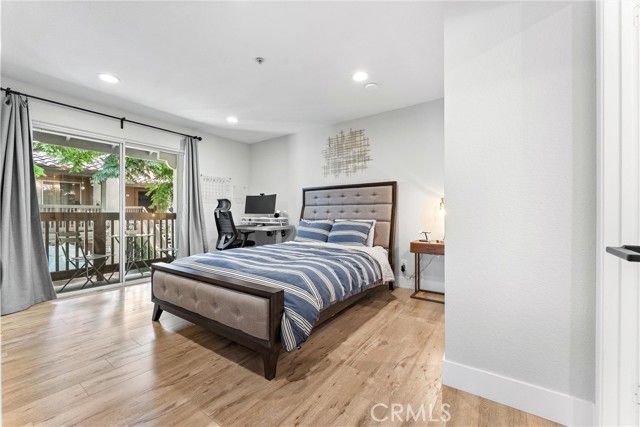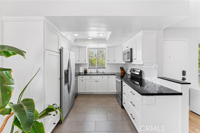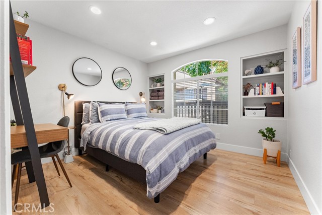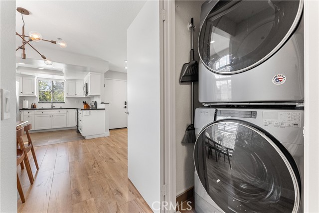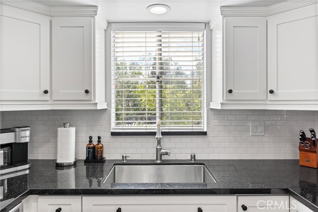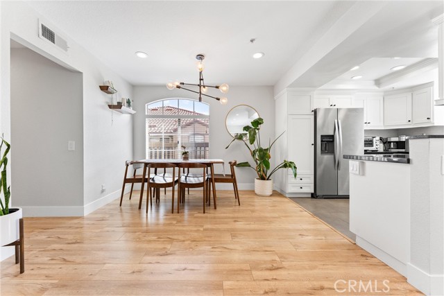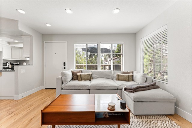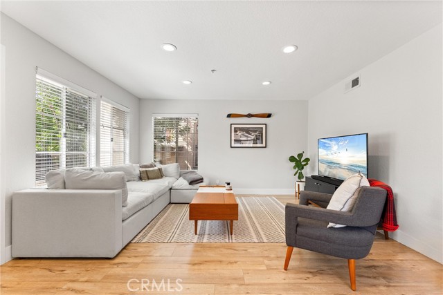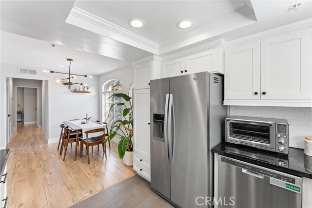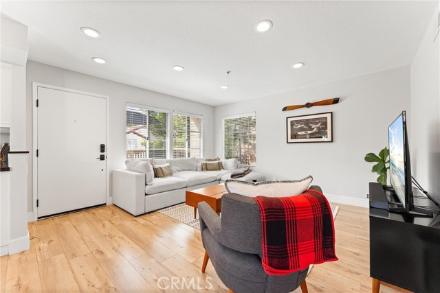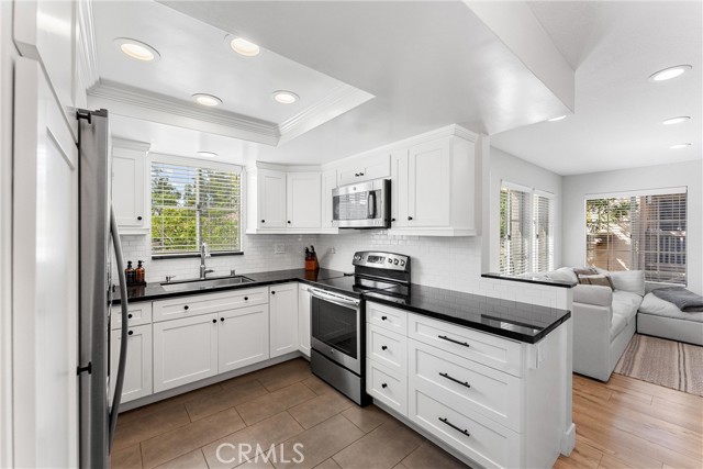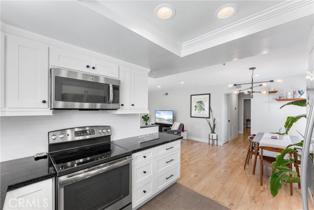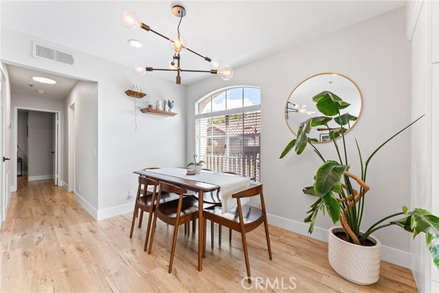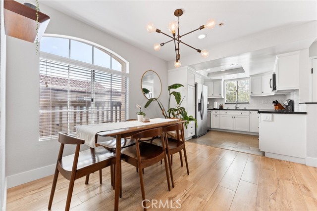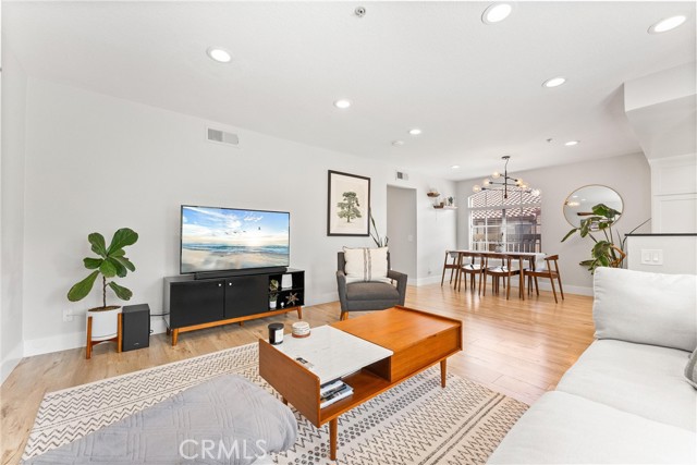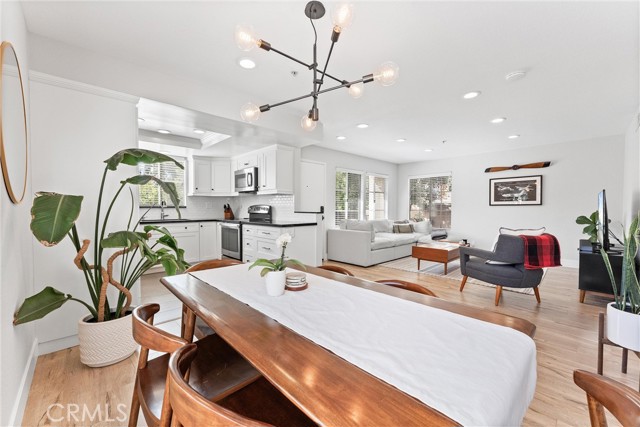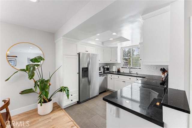 Welcome to this beautiful two-bedroom, two-bathroom carriage unit condo, with no one above or below, located in the highly sought-after Canyon Hills community in East Orange. This bright and inviting home features an open-concept layout designed for both everyday comfort and entertaining. The spacious living room offers recessed lighting, wood-style flooring, and a seamless flow into the dining area, highlighted by a contemporary chandelier and large arched window that fills the space with natural light. The kitchen is a true standout with white shaker cabinetry, sleek granite countertops, stainless steel appliances, subway tile backsplash. Both bedrooms are generously sized, with the primary suite offering an en-suite bath and walk in closet. The second bedroom provides flexibility for guests, a home office, both bathrooms feature tasteful modern finishes. Additional highlights include in-unit laundry, EV charging ready outlet in the garage, central air and heat. A private balcony provides the perfect spot to relax outdoors. Canyon Hills residents enjoy resort-style amenities, including two sparkling pools, spas, a clubhouse, a fitness center, and some utilities covered by the HOA. This is all set against the backdrop of Santiago Oaks Regional Park with its hiking and biking trails. Conveniently located near shopping, dining, and easy freeway access, this move-in-ready home offers the ideal balance of tranquility and accessibility.