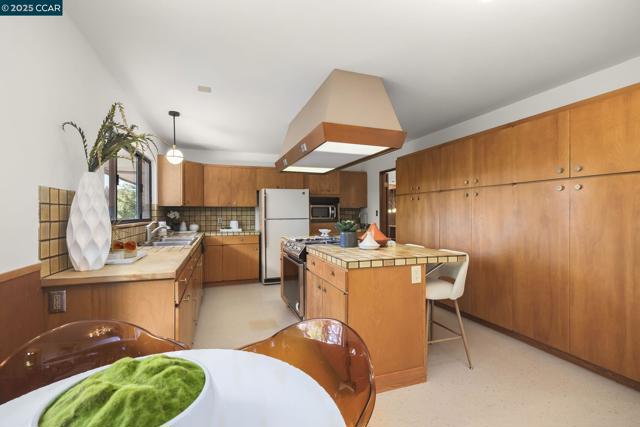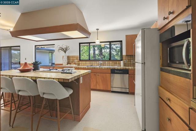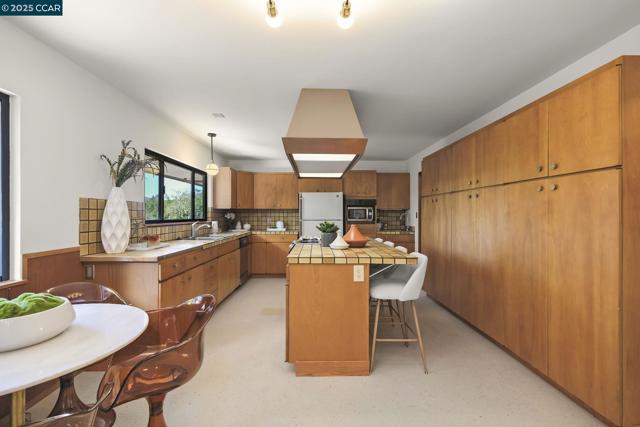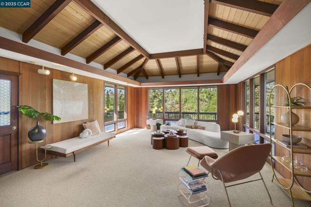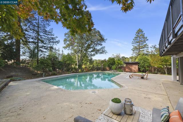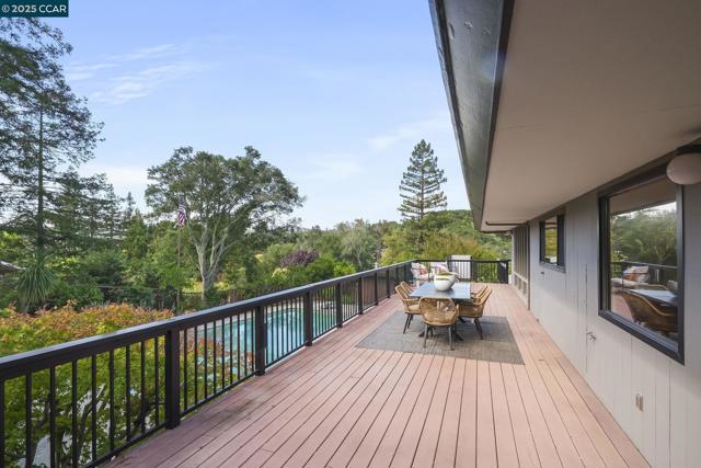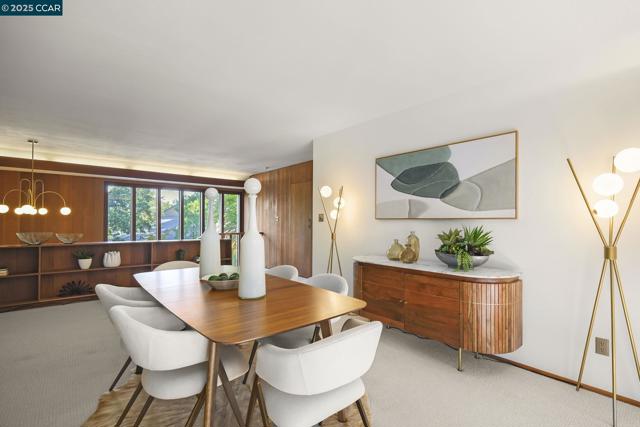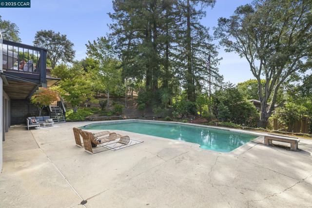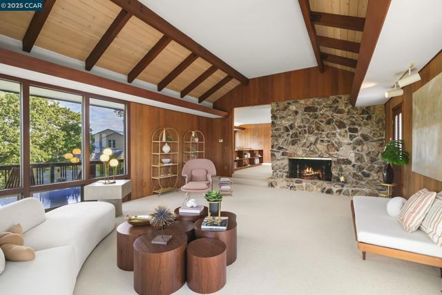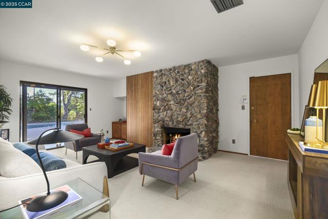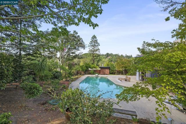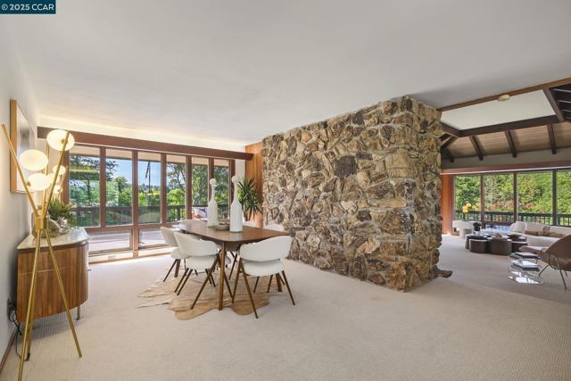 Mid-Century Gem brimming with character and timeless design, this classic mid-century home is set in one of Orinda’s most desirable locations near the Lafayette border. Expansive picture windows, a stone fireplace, and warm natural light define the formal living and dining rooms The open-concept kitchen with casual eat-in area connects seamlessly to a wonderful deck—perfect for entertaining or quiet retreat. The main level offers three spacious bedrooms, including an oversized primary suite with en-suite bath, plus an additional full bath, powder room, and large laundry. The lower level reflects the era’s signature versatility, featuring a second living space with fireplace, fourth bedroom, and flexible bonus room with storage—ideal for a home office, gym, or creative studio. Set on a lush lot with mature trees, the backyard is a private oasis with an inviting inground pool and classic California indoor-outdoor flow. Recent updates include fresh interior and exterior paint, new flooring and carpet, new hvac system and modernized lighting—all while preserving the home’s mid-century appeal. Enjoy nearby access to the Rim Trail at Lafayette Reservoir and close proximity to both downtown Lafayette and Orinda.