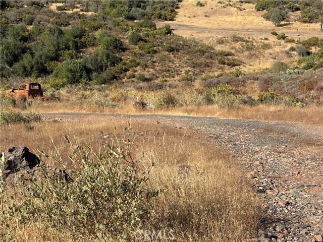 End of the road privacy with 10 acres of beautiful foothill and sunset views from the majority of this very usable land. Currently equipped with a solar well, 2 storage sheds and a couple of water tanks totaling 3500 gallons, fenced in garden area with drip system, lots of sun, and a 28 ft travel trailer. Property also has 3 seasonal creeks that converge and a seasonal pond.