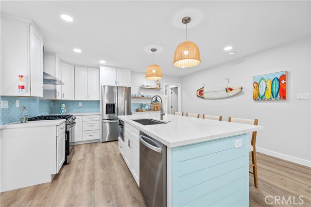 Located just six houses from the sand, this cozy coastal getaway sits in one of the best locations on Silver Strand Beach. Thoughtfully redesigned and completely renovated from top to bottom, this 3-bedroom, 2-bathroom bungalow blends modern comfort with coastal beachside charm. From the moment you step inside, you're greeted by a bright open-concept layout, stunning LVP flooring, and a show-stopping kitchen featuring a huge center island, quartz countertops, and sleek stainless steel appliances. Every inch of this home has been curated with care no detail overlooked. Both bathrooms shine with breathtaking design and modern convenience, creating a spa-like experience at home. The list of upgrades include; New roof, New plumbing, New electrical, New electrical panel, New tankless water heater, New dual pane vinyl windows, New recessed lighting, New ceiling fans, New LVP flooring, New kitchen, New appliances, New bathrooms, Epoxy garage floor, New solid core interior doors, New exterior doors, New courtyard fencing, New and upgraded front courtyard pavers, New backyard hardscape with pavers, deck and drains, New garage door, New rain gutters, Wired for HVAC, Wired for spa, Prewired for vehicle charging station. As you can see everything is new from top to bottom, offering a turn-key experience perfect as a personal getaway, vacation rental, or dreamy full-time beach home. Kick off your flip flops and relax!