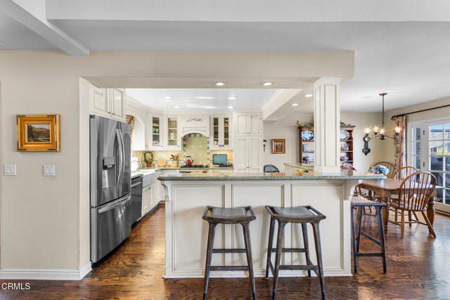 Mandalay Bay **3 bedroom**2 1/2 bath**Bonus den/loft**Downstairs primary with 40' boat dock. directly behind home*** Inviting front patio with secure gate and large north-facing deck out back. Serene colors, wide-plank solid oak hardwood floors downstairs and engineered oak flooring upstairs. French doors. built-ins. Custom built-ins French Country kitchen with butcher block island, stainless steel appliances, including LG refrigerator, KitchenAid dishwasher, Dacor convection oven and gas cook top, wine/beverage cooler. Home is in move-in condition. Located 1/2 way between LA and Santa Barbara in the Channel Islands harbor where you can boat to restaurants, yacht clubs and out to the islands.