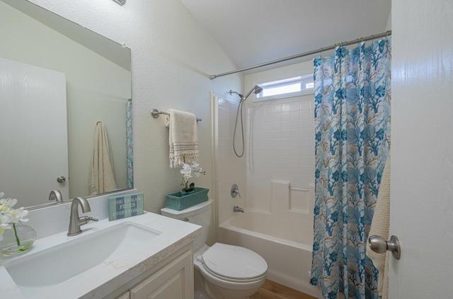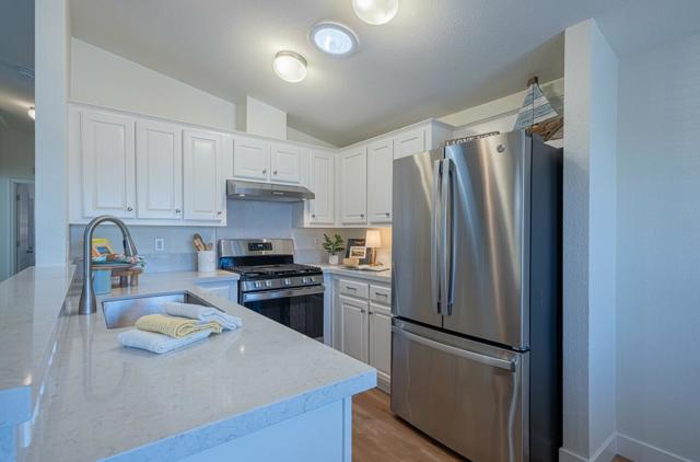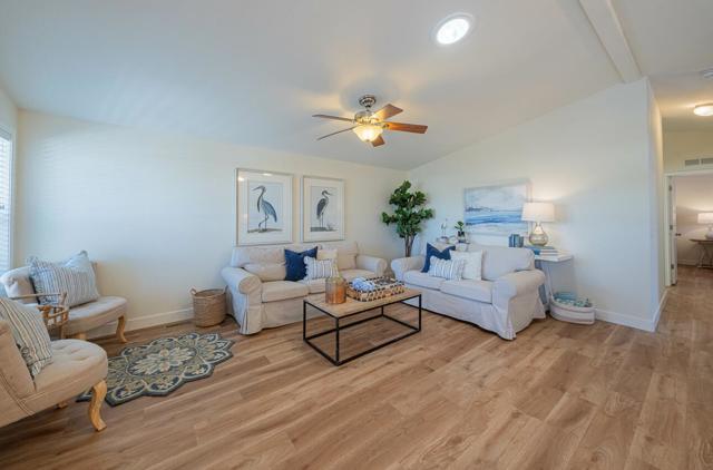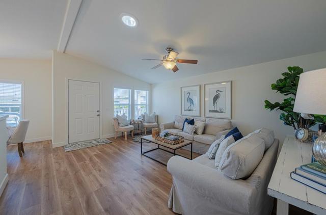 What could be better than living across the street from the picturesque Lover's Point Beach and Park and popular water-view restaurants like the Beach House? Living in your very own newer "Beach Cottage" that just underwent a complete makeover. From new wide plank flooring throughout, to new Quartz countertops in the kitchen and bathrooms, to new appliances, to new sinks and faucets, to new paint inside and out, to new fencing - all done by local professionals. The skylight tubes and vaulted ceilings create a spacious and light-filled space with an open and inviting floor plan. A peek of the water can be enjoyed from the dining room. The Monarch Pines 55+ community offers both planned and unplanned activities. The community includes a clubhouse with a roof top deck with spectacular ocean views, kitchen facilities, mgmt. office, library, rec room, putting green/bocce ball court, and an organic garden. The HOA fee covers garbage and sewer and common area. This is a stock cooperative park which means you own your unit and a voting share in the HOA that owns the land. There is no space rent but there is a monthly HOA fee. Enjoy life in this community by the sea - a wonderful place to call home!