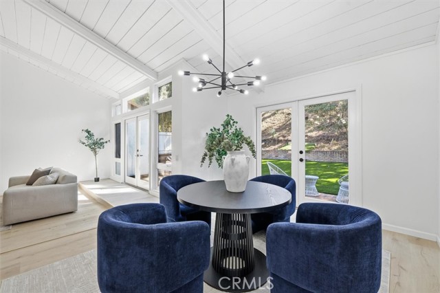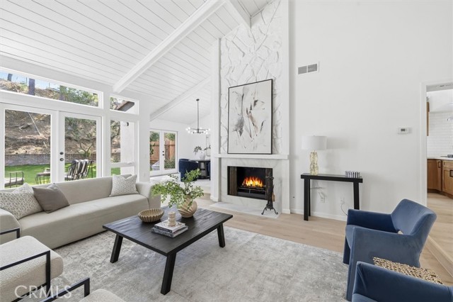 When you arrive at this Pacific Palisades residence, you are welcomed by timeless California architecture, tranquil hillside views, and a family friendly neighborhood. This single-story home blends relaxed coastal living with elegant design, offering three bedrooms and two bathrooms across approximately 2,200 square feet of thoughtfully curated space. Inside, natural light floods the open layout through expansive windows, creating a warm and inviting atmosphere. The main living area centers around a statement fireplace and vaulted ceilings, giving the space a sense of openness and charm. The adjoining dining area flows seamlessly into a spacious kitchen that offers generous cabinetry, ample prep space, and the perfect foundation for a modern culinary upgrade. Whether entertaining guests or enjoying quiet evenings at home, every corner of this residence is designed for comfort and effortless living. Sliding glass doors open to a private backyard sanctuary surrounded by lush landscaping. The outdoor space offers a tranquil setting for entertaining, relaxing, or enjoying the California sunshine. With approximately 6,600 square feet of land, there is room to expand, add a pool, or create an outdoor kitchen and lounge for year-round enjoyment. The primary suite is a serene retreat with direct access to the yard, a spacious walk-in closet, and an ensuite bath ready for a luxurious reimagination. Two additional bedrooms provide versatility for guests, family, or a home office, each designed with ease and functionality in mind. Located just moments from Palisades Village, the beach, hiking trails, and top-rated schools, this home captures the very best of the Pacific Palisades lifestyle. 17207 Avenida De La Herradura is more than a home; it is an opportunity to experience everyday life surrounded by beauty, peace, and possibility. Whether you choose to move in and enjoy its existing charm or transform it into your own coastal masterpiece, this property invites you to live with sophistication and serenity in one of the most coveted communities on the Westside.