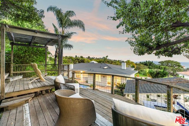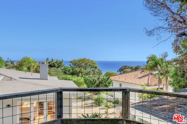 Nestled within the exclusive and thriving coastal enclave of Pacific View Estates, this sprawling single-level architectural home offers the rare combination of ocean views, modern comfort, and resort-style living on more than 20,000 square feet of private grounds. Located just moments from the beach and the Getty Villa, the residence is ideally positioned to take advantage of the serene coastal setting while remaining close to Palisades Village, Malibu, and the Westside. A dramatic skylit entry welcomes you into light-filled interiors where hardwood floors, vaulted ceilings, and French doors create a sense of scale and warmth. The expansive living room is anchored by a striking fireplace and opens seamlessly to outdoor entertaining areas, while the formal dining room is designed for gatherings both intimate and grand. The gourmet kitchen is a showpiece of form and function, featuring granite countertops, a center island, breakfast bay window, and an array of premium appliances: a Thermador range, GE Monogram refrigerator, GE microwave, Moen fixtures, and a Marvel wine fridge for curated storage. Skylights above flood the space with natural light, elevating both everyday meals and large-scale entertaining. The primary suite is a true retreat, complete with a sitting area, fireplace, dual walk-in closets, and a luxurious marble spa bath with dual sinks, a soaking tub, skylight, and glass shower. Additional bathrooms are appointed with Kohler fixtures and include an Axent.One C Plus intelligent toilet with full smart functionality. Secondary bedrooms offer versatility for guests, family, or office use, while a separate maid's or guest quarters adds privacy and convenience. Step outside to a backyard designed for leisure and entertainment. Multiple patios and decks frame a dramatic waterfall pool and spa, complemented by a built-in BBQ center, lush landscaping, and expansive lounge areas perfect for soaking in sunsets and coastal breezes. The generous lot size allows for both privacy and play, creating the feel of a personal resort. With its one-story design, high-end appointments, and seamless indoor-outdoor flow, this residence captures the essence of California living. Combining location, luxury, and lifestyle, it is an exceptional opportunity in one of the Westside's most desirable neighborhoods.