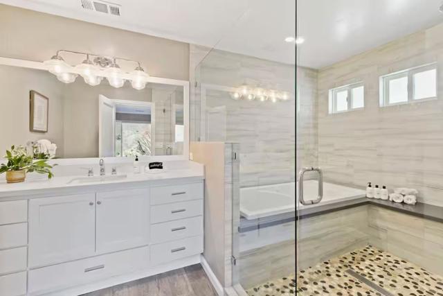 Amazing views! Experience elevated living in this stunning 4-bed, 3.5-bath hilltop home with panoramic valley and mountain views! Nestled on one of Park Pacific's most desirable cul-de-sacs, this beautifully remodeled and expanded residence is among the largest in the Valley. Updated in 2017 with meticulous attention to detail, it offers modern comfort, timeless design, and bright, open layout. The main level flows seamlessly to an expansive deck with relaxing hot tub and serene hillside backdrop. Recessed lighting throughout enhances the warm ambiance, while every room features large picture windows framing breathtaking mountain views. Upstairs features spacious family room, four bedrooms, and spa-inspired bathroom with walk-in shower. Enjoy premium features, including dual-zone heating, tankless water heater, and abundance of natural light. Outside, your private garden oasis awaits. Pick fresh apricots, plums, avocados, and pomegranates right from your own trees. A rare combination of space, style, and location, this Park Pacifica gem is truly a must-see!