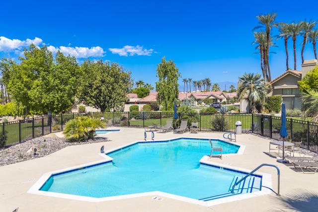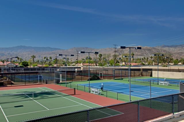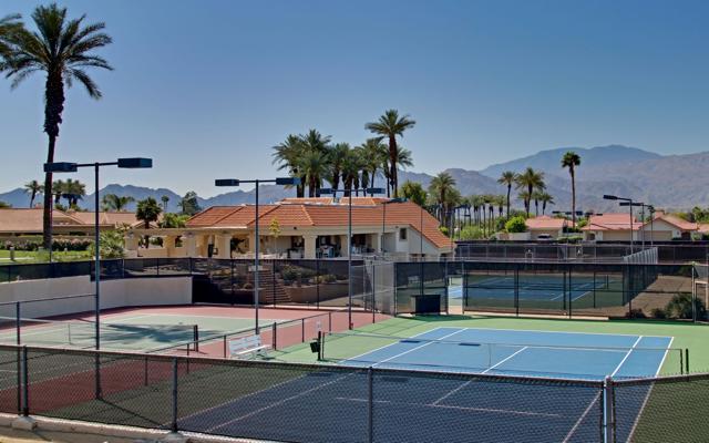 PRICED TO SELL FAST...WELCOME TO SILVER SANDS RACQUET CLUB...Palm Desert's HIDDEN GEM and one of the BEST non-golf course GATED communities in the desert. Here, life feels like a resort getaway every day. Picture yourself surrounded by lush greenbelts, dipping into one of the 15 sparkling pools and spas or rallying with friends on one of the 7 lighted tennis courts or 4 pickleball courts (with pro coaches available in season!) Add in a clubhouse, fitness center all in a guard gated community. Silver Sands RC has it all. Location? Perfection, You are right next to the J.W. Marriott Desert Springs Resort and across the street from Desert Willow Golf Resort where Palm Desert homeowners score reduced green fees. Shopping, dining and entertainment are just minutes away. THIS SOUGHT AFTER ''F''plan with 2 Bed/ 2Bath, end unit is in a prime location with a private side courtyard and breathtaking MOUNTAIN VIEWS. Inside, it is light and bright and welcoming with a cozy fireplace in the living room and an upgraded primary bath featuring a sleek walk-in shower. The courtyard has been refreshed with stylish interlocking pavers and the 2-car attached garage makes life easy. Lovingly maintained by the same owner for 25 years, this home is offered furnished per inventory - ready for you to move right in and add your personal touch.Whether you are searching for a full-time desert retreat or a vacation escape this home delivers. Don't miss this opportunity - Call today for a private showing. YOU WILL NOT BE DISAPPOINTED.
