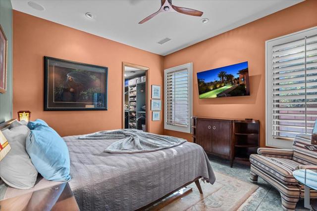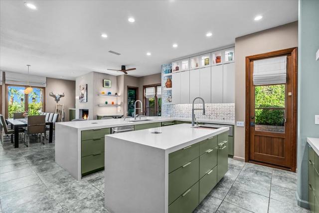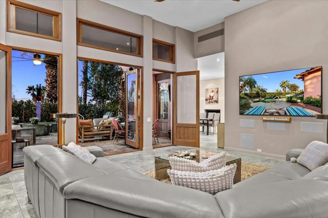 ** Massive Price Reduction ** Tucked against a tranquil hillside of Palm Desert, just moments from the shops, dining, and entertainment of El Paseo, this custom-built residence blends artful design with modern luxury. Originally constructed in 2000 by acclaimed novelist and artist John Weston as his private retreat, the home offers a rare balance of privacy, comfort, and sophistication.Recently enhanced by a $300,000 update, the property now features a reimagined chef's kitchen with custom cabinets, quartz countertops, new suite of Kitchenaid appliances including two dishwashers and a Miele built-in coffee maker, wine pantry, laundry room, garage, and landscaping, along with the transformation of the large fourth bedroom--currently serving as a media room yet easily converted back into an attached casita.Designed for both relaxation and entertaining, the home showcases 10 and 14 foot ceilings, Italian porcelain and wood flooring, and abundant natural light. The saltwater lap pool and spa invite serene outdoor living, complemented by slate patios, outdoor fireplace, tranquil garden fountain, and sweeping mountain, desert and city views.Notable features include an owned solar system, refrigerated and insulated walk-in wine and beverage pantry, whole-house water softener, reverse osmosis filtration in the kitchen, custom cabinets, patio misters for the secluded entrance and rear patio, and an air-conditioned garage equipped with a 220-volt plug and two hydraulic car lifts--allowing parking for up to four full-size cars.Each of the four bedrooms offers a private ensuite bath (one with steam shower) individual climate and sound controls, ensuring comfort and privacy for all. Every exterior door is crafted from wood, many as elegant French doors opening to the home's inviting outdoor spaces.Located within the gated community of Vista Paseo on approximately one-third acre of fee-simple land, this home embodies desert living at its most refined--private, artful, and designed to entertain beautifully.Call listing agent for your private showing.