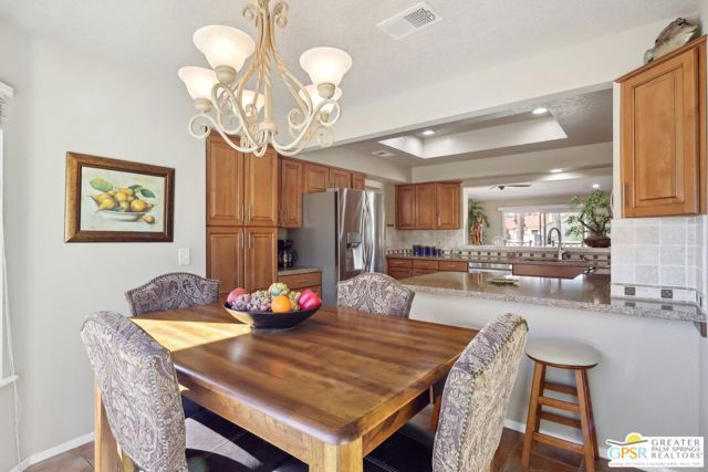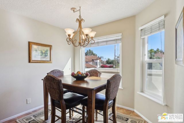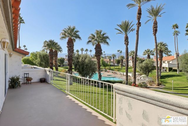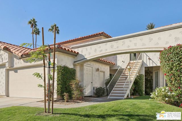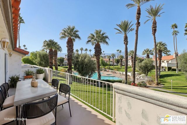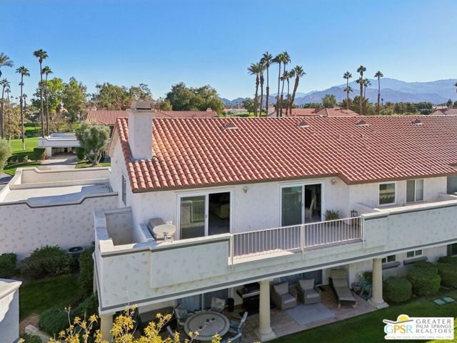 Welcome to Desert Falls Country Club, where resort-style living meets unbeatable convenience. This beautifully updated, fully furnished condo is turnkey ready and is perfect as a serene primary home, a desert vacation retreat, or a profitable Airbnb investment with no rental restrictions. Step inside to discover a host of brand-new upgrades, including dual-pane windows, sliding doors, plush carpeting, modern ceiling and exhaust fans, updated electrical outlets and switches, and stylish new door hardware throughout. The kitchen is a dream with granite countertops, pull-out drawers, under-cabinet lighting, and a brand-new dishwasher. The spacious living area boasts high ceilings, recessed lighting, and abundant natural light, anchored by a cozy gas fireplace, the perfect place to relax or entertain. Enjoy two generous bedrooms with walk-in closets, plus a versatile third room ideal for a home office or den. Step out to your private balcony and take in panoramic mountain views, while overlooking the pool and spa. With an oversized BBQ area, this is the ultimate spot for outdoor entertaining. The HOA offers a 24/7 guard-gated entrance and an array of resort-style amenities: multiple pools and spas, tennis and pickleball courts, a fitness center, clubhouse, and more. Cable, internet, and trash are all included in the HOA dues. Additional highlights include a two-car garage, dedicated laundry room, and ample storage. All located in a quiet, highly desirable neighborhood just minutes from shopping, dining, and world-class golf. Don't miss this opportunity to own a move-in-ready gem in one of the desert's most sought-after communities. Schedule your personal showing today!