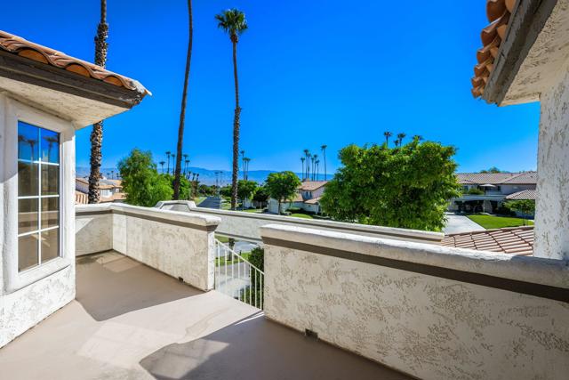 Welcome to 357 Desert Falls Drive East, an exceptional top-floor condo in the guard-gated Desert Falls Country Club, offering 3 bedrooms, 2.5 bathrooms, and 1,814 sq. ft. of light-filled living space. Perfectly positioned in the heart of Palm Desert, this home combines comfort, style, and investment potential--ideal as a full-time residence, seasonal getaway, or short-term rental. Inside, a bright and airy floor plan showcases soft neutral paint, plush carpeting, and custom shutters throughout. The spacious Great Room features a cozy fireplace and flows effortlessly into a dedicated dining area and a charming breakfast nook, creating an inviting space for everyday living and entertaining. The well-appointed kitchen boasts updated stainless steel appliances, a raised breakfast bar, and ample storage, making it both functional and stylish. The primary suite is a private retreat with a large corner soaking tub, perfect for unwinding after a day on the course. Two additional bedrooms provide flexibility for guests, a home office, or personal pursuits. Additional highlights include a detached two-car garage and furnishings included for ultimate convenience. Desert Falls Country Club is renowned for its amenities and prime location. Golfers will appreciate the 18-hole championship course, designed by internationally acclaimed architect Ron Fream, ranked among the top 10 courses in the Coachella Valley by the Southern California PGA and earning a four-star rating from Golf Digest's Best Places to Play. Beyond golf, residents enjoy a vibrant clubhouse featuring two restaurants, meeting rooms, and event facilities, along with tennis and sports courts and a lively social calendar. The community's 24-hour guard-gated security ensures peace of mind, and short-term rentals are permitted--adding significant value for investors. Set in Palm Desert's sought-after country club corridor, you're minutes from world-class shopping, dining, entertainment, and resorts, with easy access to golf, hiking, and the greater Coachella Valley. This Desert Falls residence blends location, lifestyle, and flexibility, offering a true desert retreat ready to enjoy.