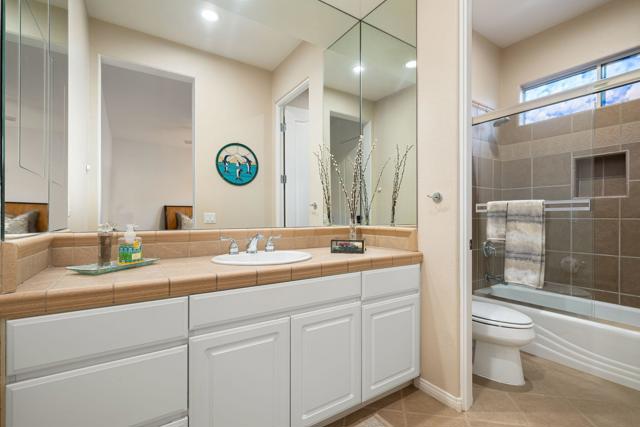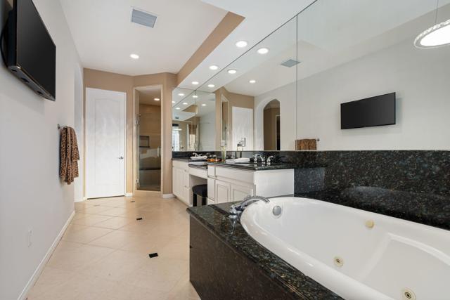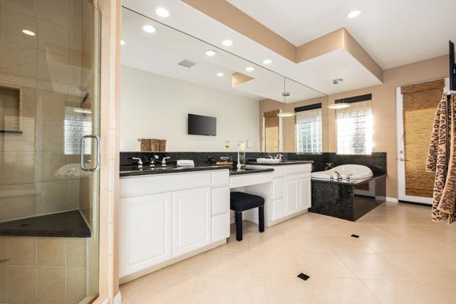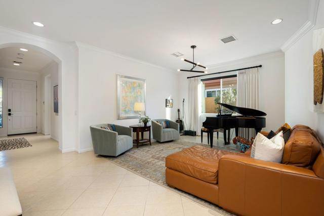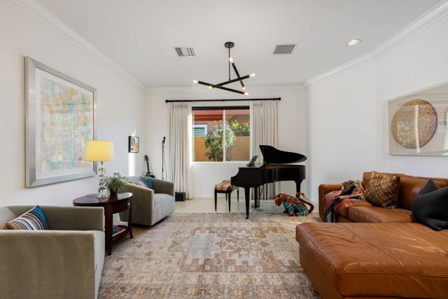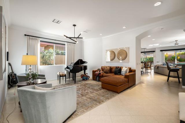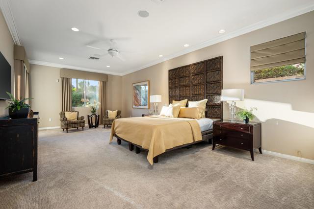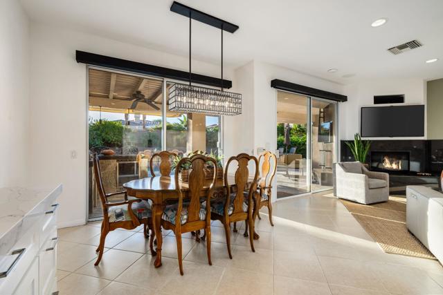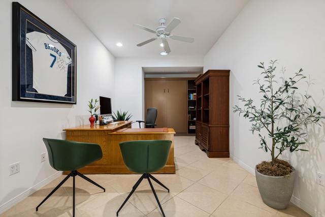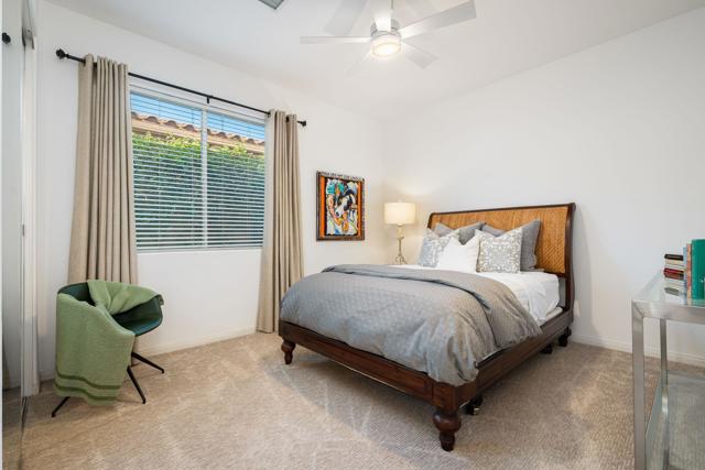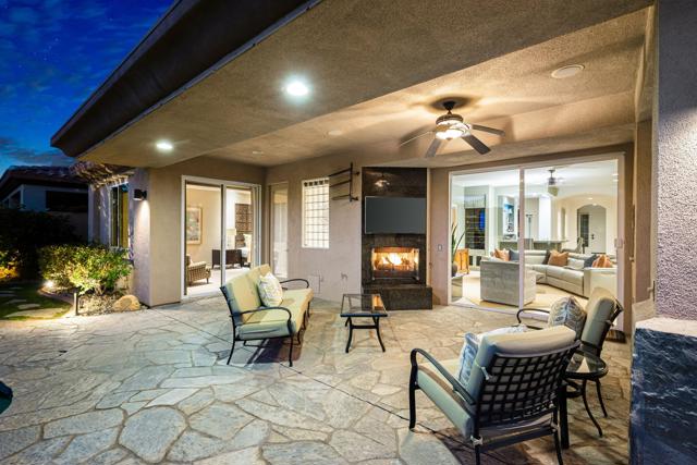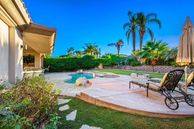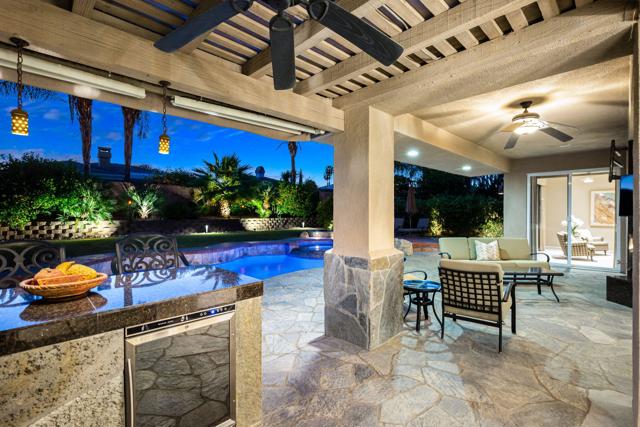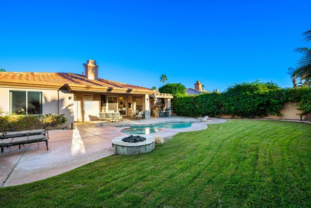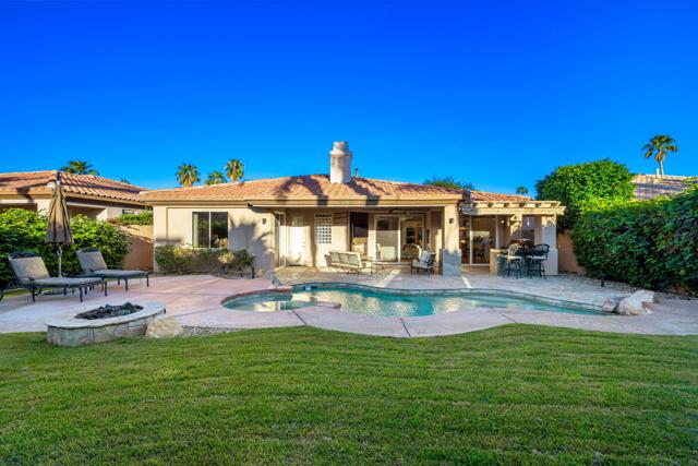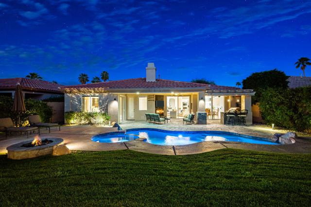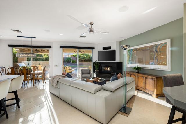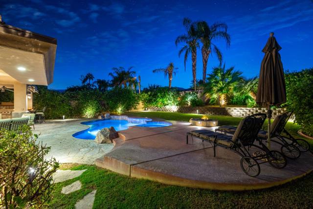 Welcome to your perfect Palm Desert retreat! Ideally situated in a prime central location, this stunning residence offers the best of desert living--just minutes from top-rated restaurants, grocery stores, shopping, and entertainment. Step inside and you'll immediately notice the open, inviting floor plan designed for both relaxation and entertaining. The home features three spacious bedrooms, each with its own en suite bathroom, providing comfort and privacy for family and guests alike. There's also a versatile den equipped with a murphy bed, making it the perfect flex space for a home office, media room, or an additional guest room.The newly remodeled kitchen is the heart of the home, complete with sleek quartz countertops, brand-new appliances, and a modern bar area ideal for hosting gatherings or enjoying a quiet morning coffee. The seamless flow from the kitchen and great room to the outdoor living area creates a true indoor-outdoor lifestyle that's synonymous with the desert experience.Step outside and be captivated by a backyard designed for entertaining and relaxation. The expansive patio features stone columns and flooring and multiple areas to lounge or dine al fresco. Gather around the fire pit, watch your favorite shows on the flat-screen TV, or fire up the built-in barbecue for an evening with friends. The retractable awnings and misting system ensure year-round comfort, while the Pebble Tec pool and spa invite you to unwind in total luxury.Additional highlights include a three-car garage with new garage doors, custom built-ins, and epoxy flooring, offering plenty of space for storage or a home gym. Set within a quiet, family-friendly neighborhood, this home combines thoughtful design, modern upgrades, and a resort-style backyard to deliver the ultimate Palm Desert lifestyle. Whether you're looking for a full-time residence, vacation getaway, or investment opportunity, this property truly has it all.**Original plans reflect approximately 3,085 sq. ft. During construction, the owner added an additional 6 feet to the primary bedroom. Buyer to verify all square footage and satisfy themselves with regard to accuracy.**