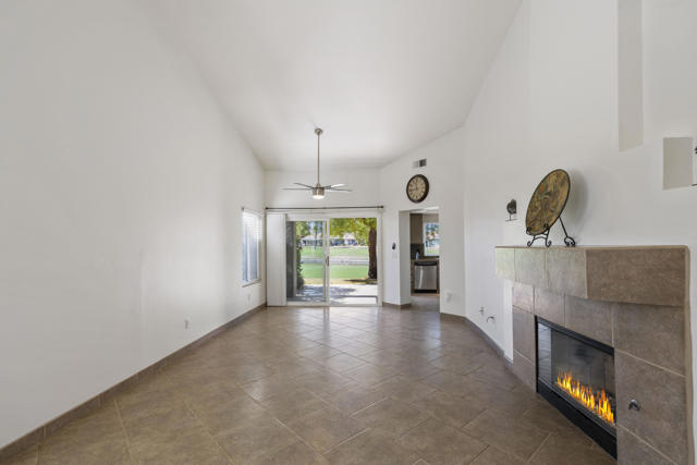 Welcome to Palm Desert Resort Country Club, where resort living meets spectacular views. This beautifully upgraded Augusta model sits on a prime lot overlooking the lake, mountains, and the 6th fairway--one of the community's most scenic settings. The remodeled kitchen features granite counters, stainless appliances, and a refaced fireplace. The primary suite offers dual vanities, a skylight, soaking tub, and separate shower, while the guest bath includes a stylish walk-in shower. Tile flooring flows throughout the home, with carpet in the bedrooms, dual-pane windows, and newer A/C and furnace providing comfort year-round. Located in a 24-hour guard-gated community with 20 pools and spas, clubhouse, golf, tennis, and pickleball available--this home is move-in ready and ready to impress.