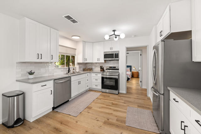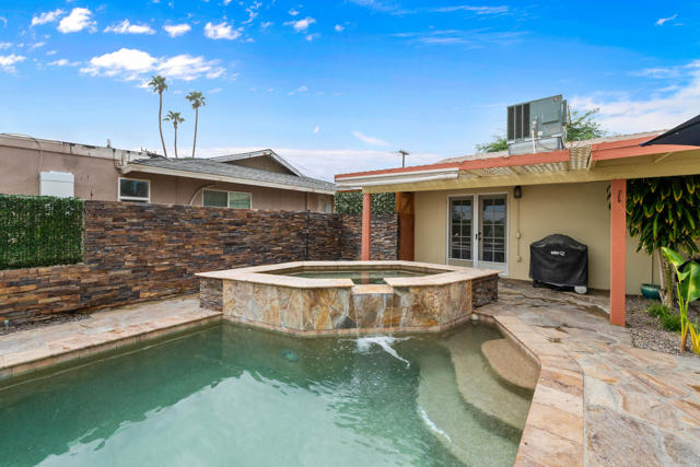 Great price on this gorgeous newly renovated golf course view pool home with Casita in Palm Desert Country Club! Beautiful Pebbletec Pool with a raised Waterfall Spa! Large backyard with view of Fairway #1! The permitted Detached Casita is the third bedroom and bath (248 sq. ft.). The main house is 2+2 and has a newly remodeled kitchen with new countertops, backsplash, white cabinets, and stainless-steel appliances! New flooring with baseboards throughout! Bathrooms are upgraded. Smooth ceilings and newer HVAC duct work. Covered stone patio. Jetted spa tub in one bath. Newer dual pane windows in primary and living room. There is a separate laundry/hobby room with lots of storage adjacent to the garage - with extra storage space. Newer composition roof and professional landscaping. PDCC provides lots of activities for only $33/mo. This is a must see, must have home!