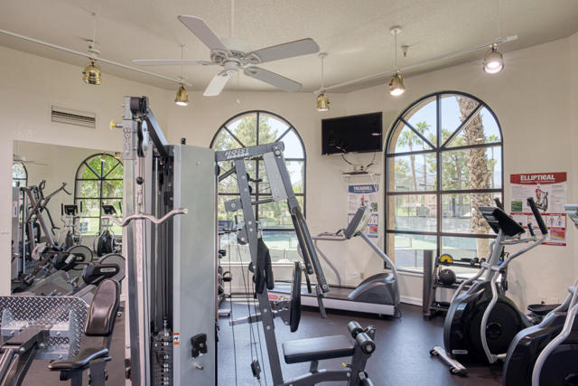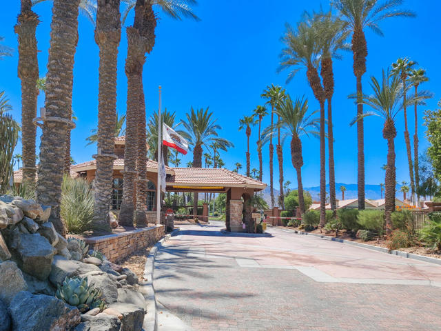 Welcome to your impeccably maintained, move-in-ready retreat in the highly sought-after Oasis Country Club! Step through the private courtyard entry and feel instantly at home. This beautifully remodeled 2-bedroom, 2-bath condo has been thoughtfully upgraded with modern finishes throughout. Gleaming polished flooring sets the tone as you enter the vaulted living room, featuring a cozy gas fireplace, a convenient wet bar, and a sliding glass door that opens to a covered patio with serene pool and golf course views. The adjacent dining area is perfect for entertaining, while the remodeled kitchen shines with granite countertops, white cabinetry, and new stainless appliances. The vaulted primary suite offers a peaceful retreat after sun-filled desert days, while the secondary bedroom provides flexible space for guests, a home office, or den. Additional highlights include new light fixtures and ceiling fans throughout, adding both style and comfort. This home also offers a rare sense of privacy and is ideally located just steps from one of the community's many pools and spas--making it feel like your own personal oasis. HOA fees include premium streaming channels, internet, trash, and sewer, ensuring convenience and value. The Oasis Country Club is a vibrant, amenity-rich community featuring an 18-hole golf course, 18 pools & spas, pickleball and tennis courts, a fitness center, library/card room, and even a dog park. Residents also enjoy two on-site restaurants--a casual grill and an upstairs dining room and bar that hosts live music and special events. All amenities, including the golf course, are professionally managed on-site for truly worry-free enjoyment. Ideally located minutes from the Indian Wells Tennis Garden, home of the BNP Paribas Open, and the upscale shopping and dining of El Paseo, this property offers the perfect blend of resort-style living and everyday convenience. Don't miss the opportunity to own your slice of paradise in one of the Coachella Valley's most desirable communities!