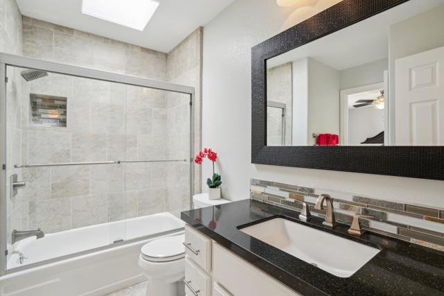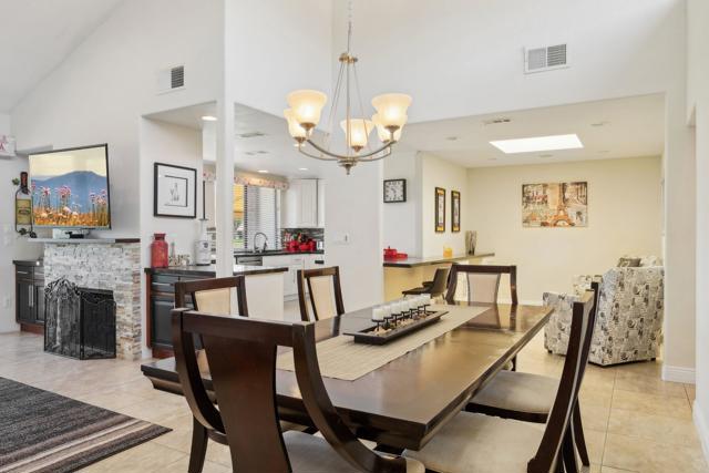 Contemporary Remodeled 3-Bedroom Home with Stunning Fairway Views! Welcome to your dream desert retreat! This stunning contemporary 3-bedroom, 2-bath home, featuring the highly desirable 300 Plan with an expansive open living concept ideal for both relaxing and entertaining. Step into the lush, private front courtyard, a peaceful sanctuary that sets the tone for the rest of this stunning property. Inside, the living area is enhanced by vaulted wood beam ceilings, recessed lighting, and a striking stack stone fireplace that creates a warm, stylish focal point. The kitchen is a chef's dream, boasting custom cabinetry, granite slab countertops, and sleek stainless-steel appliances. Throughout the home, you'll find upgraded baseboards, ceiling fans, and thoughtful touches that elevate the space. The primary suite includes a spa-like bathroom with an oversized shower and a skylight that floods the space with natural light. Guest bathrooms are equally well-appointed with granite countertops, and the guest bedrooms also enjoy natural illumination thanks to additional skylights. A unique highlight of this home is the converted atrium, now a bright den or office space featuring skylights -- perfect for remote work or a quiet reading nook. The attached garage offers direct access, ensuring both convenience and security. And let's not forget the breathtaking double fairway views - the perfect backdrop for morning coffee or evening cocktails on the patio. This move-in ready home combines contemporary modern design with comfort and functionality in one of the area's most desirable communities. A must-see for buyers seeking style, quality, and prime location!