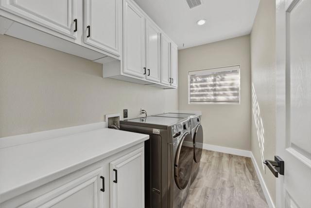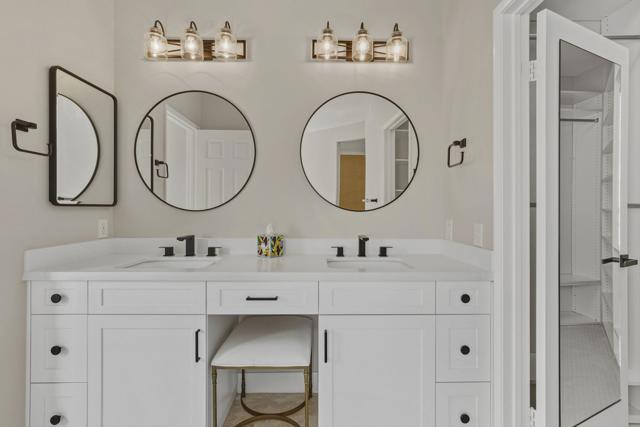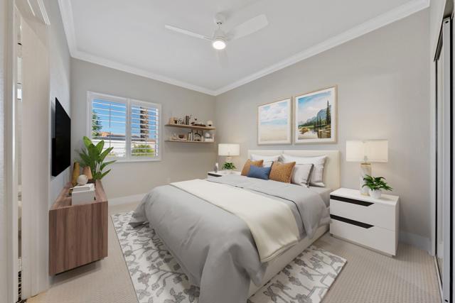 Modern Desert Oasis | 3 Bed | 4 Bath | PRIME CORNER LOT | PAID/OWNED SOLAR | NEW HVAC | GARAGE MINI A/C SPLIT | NO HOA's | REMODELED- Minutes from El PaseoStep into refined Palm Desert living with this immaculately upgraded 3-bedroom, 4-bathroom home, nestled on a desirable corner lot in the heart of the city ''just minutes from the shops and restaurants of El Paseo.' With elegant designer touches throughout, this home is the perfect blend of luxury, efficiency, and comfort.Inside, you are welcomed into a bright, open layout with new wood-look tile flooring, fresh interior paint, crown molding, and taller baseboards throughout. A striking accent wall in the living room and new electric fireplace with designer tiles add warmth and contemporary flair.The chef's kitchen is both stylish and functional, featuring quartz countertops, custom backsplash, a sit-up breakfast bar, and a new custom pantry with pull-out drawers and soft-close cabinetry. All kitchen drawers feature soft-close hardware for added convenience.The primary suite is a private retreat, showcasing motorized shades, a newly remodeled bathroom with custom double vanity, comfort-height toilet, and new floor tile. A walk-in closet has been added to the front secondary bedroom, and all bathrooms feature upgraded comfort-height toilets for added luxury.Natural light fills every room, accentuated by new shutters in the dining room, living room, and secondary bedrooms, and motorized shades in the family room, kitchen, and primary suite (with remote control). Additional features include: Brand-new HVAC system (installed March 2025); Mini A/C Split system in garage for climate-controlled storage or workspace; Epoxy-coated garage floors; New ceiling fans in the living room, family room, and guest bedrooms.Outdoor living is just as impressive, with two private patios ideal for relaxing, dining, or entertaining under the desert sky. A professionally installed bocce ball court adds a playful touch, while the beautifully landscaped yard with custom lighting creates dramatic ambiance both day and night.With OWNED SOLAR installed in October 2024, this home is as energy-efficient as it is beautiful offering low operating costs without sacrificing modern comfort.This property is the perfect mix of elegance, functionality, and unbeatable location. Whether you are entertaining guests or enjoying quiet evenings under the stars, this Palm Desert gem truly has it all.Come See why We LOVE this Home!!