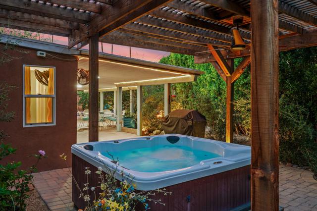 Discover this beautifully updated desert retreat in sought-after South Palm Desert. From the moment you arrive, the home's curb appeal shines with desert landscaping, custom lighting, and an inviting entryway. Step through the private front yard and you're greeted by your own putting green, setting the tone for the resort lifestyle that awaits inside.As you enter, walls of newly updated glass sliders and windows showcase the backyard oasis -- a tranquil escape with a sparkling PebbleTec pool, hot tub, fire pit, gorgeous pergola, misters, and mature trees providing shade and privacy. It's the perfect space for both quiet relaxation and effortless entertaining.Inside, you'll find two spacious living areas and an open kitchen featuring granite countertops and stainless steel appliances. The expanded primary suite offers a generous walk-in closet and separation from the guest bedrooms for added privacy. With owned solar, a two-car garage, and extra storage sheds in the backyard, this home delivers both style and efficiency.Just a short stroll or golf cart ride to the world-class shopping and dining of El Paseo, this home perfectly blends resort-style living with everyday convenience. Call to see this beautiful home today!