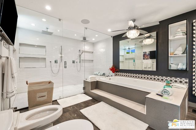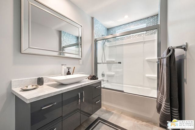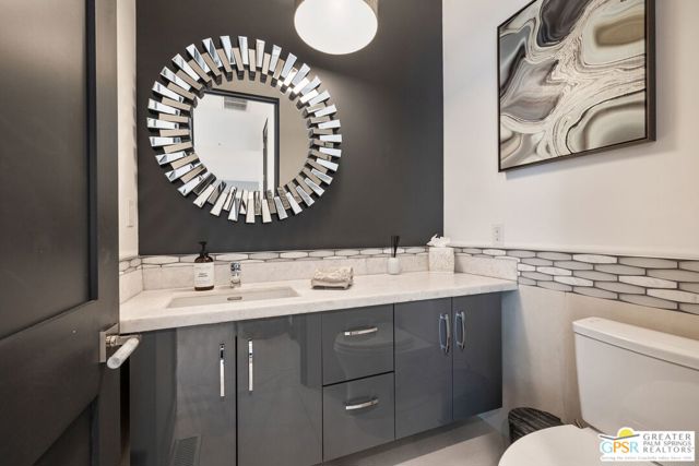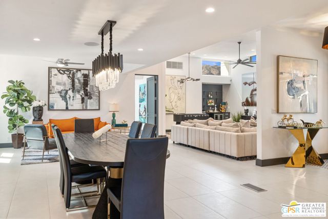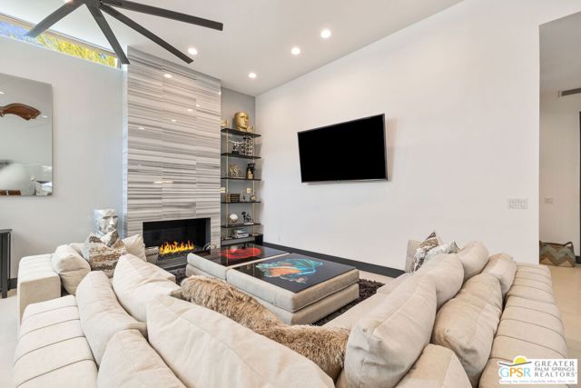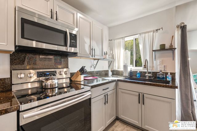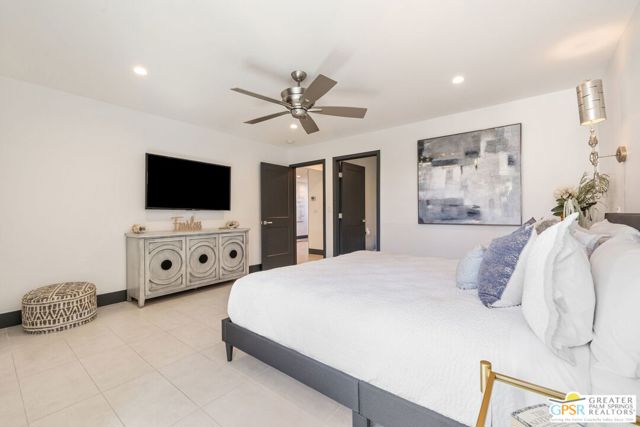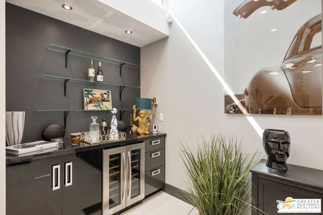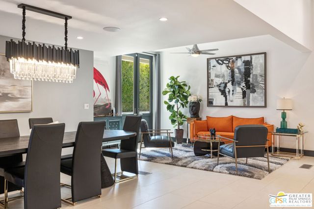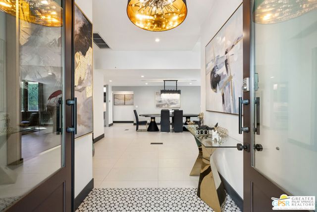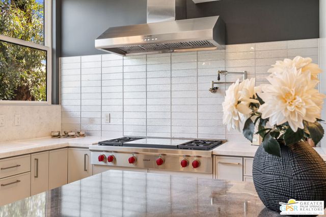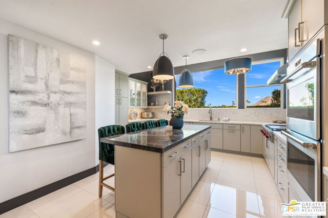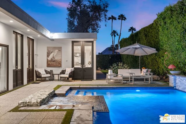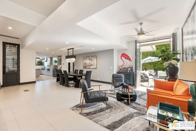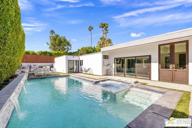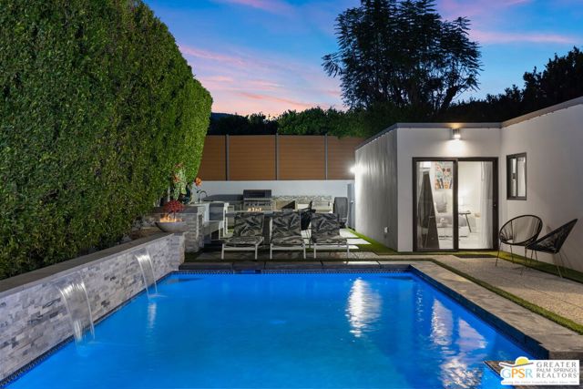This stunning fully renovated modern home with a separate ADU is a standout in South Palm Desert. Originally built in 1979 and fully remodeled in 2020, the property offers an open-concept design with soaring ceilings, sleek tile floors, and designer finishes throughout. The chef's kitchen is outfitted with Wolf 48" range top, Wolf double ovens, Thermador range hood, Miele tower refrigerator and freezer, Miele dishwasher, Sharp drawer microwave, Insignia dual zone wine and beverage center, and Samsung washer and dryer. The main living areas open seamlessly to the backyard through new Milgard dual pane windows and Sierra Pacific dual pane doors, creating the ideal indoor-outdoor lifestyle. The attached ADU features its own full kitchen, walk-in custom closet, mini-split A/C, and walk-in tile shower. The primary suite boasts two large custom Closet World walk-in closets, designer bath fixtures, Toto toilets, a separate Toto bidet, and Emtek marble door hardware. Additional upgrades include a Lennox condenser and Anthem HVAC system, upgraded 220 electrical panel, two Vesta tankless water heaters, Ring and Vivint integrated smart alarm systems with fire and CO monitoring, and the home is fully wired for surround sound. Outside, the resort-style backyard is designed for entertaining with a custom gourmet outdoor kitchen featuring Firemagic BBQ with rotisserie, BBQ Galore refrigerator, ice and beverage station, wok cooking station, sink with hot and cold water, custom seating, tiled prep areas, and a rectangle fire feature table. The saltwater pool and spa include a Pentair system, heater, three waterfalls, and two fire bowls, surrounded by lush desert landscaping, drip irrigation, and ample privacy. Additional amenities include a three-hole putting green, multiple seating and sunning areas, RV parking pad with hookups behind custom gates, driveway lighting, landscape lighting, and full sensor/flood lighting. This home offers a two-car garage, additional driveway and boat parking, mountain views, no HOA fees, and is short-term rental eligible. Please note for short-term rentals, the home must be owner occupied. You can either reside in the main house and rent out the casita, or stay in the casita and rent out the main house. Perfectly located near El Paseo dining, shopping, and golf, this move-in-ready modern retreat represents the best of Palm Desert living. Turnkey option: furnishings may be purchased separately, outside of escrow.