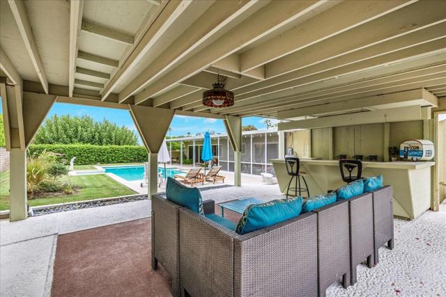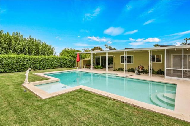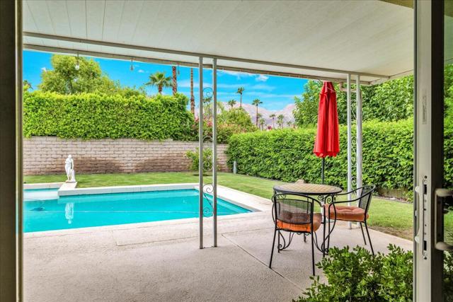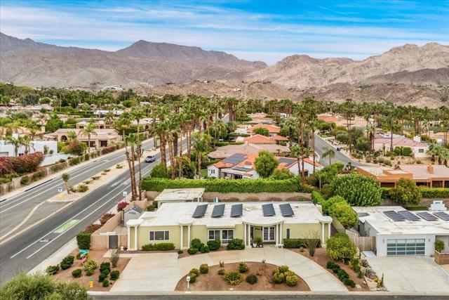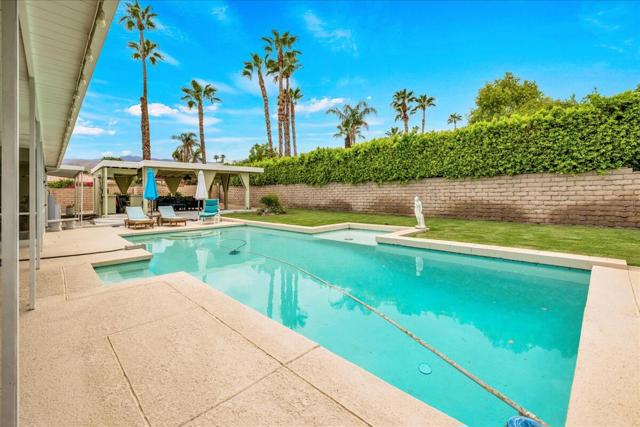 Escape to authentic mid-century style in this rare 1964 Bob White-designed treasure, nestled on a spacious corner lot in the coveted Highland Palms Estates of South Palm Desert. Framed by unobstructed mountain vistas and thoughtfully sited away from unsightly power lines, this architecturally significant residence is a true Palm Desert gem for lovers of classic modern design. Inside, a luminous wall of glass captures the iconic desert landscape, seamlessly connecting soaring open-plan living and dining spaces to the outdoors. This home is a perfect backdrop for curated vintage furnishings and stylish entertaining. Original features like the elegant fireplace and rear cabana speak to the era's legendary indoor-outdoor lifestyle, while the sweeping backyard is anchored by a generous private pool making this an entertainer's paradise for afternoon lounging or sunset martinis. With four bedrooms and three baths, including a flexible attached casita with its own private entrance, kitchen, living room, bedroom and bath. The layout offers ultimate versatility. Live in the main quarters and host guests, or generate extra income with seasonal rentals, a valuable opportunity in Palm Desert. A paid solar panel system ensures energy efficiency, cost savings, and modern comfort, blending sustainable living with mid-century authenticity. Ample parking is available with a classic circle drive. Discover your architectural oasis, designed to delight those who cherish clean lines, sunlit spaces, and the enduring glamour of the mid-century desert lifestyle. Paid SOLAR!