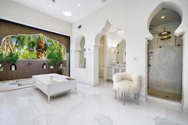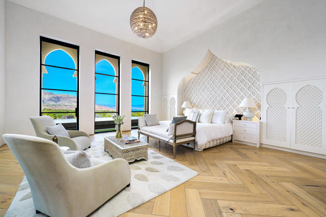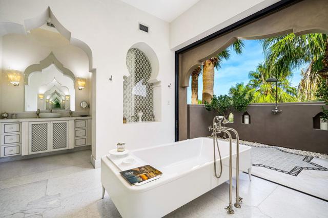 Welcome to Casbah Cove -- a Moroccan-inspired architectural masterpiece featuring a retractable glass roof system to be showcased on the winter cover of Unique Homes Magazine. Perched high within the prestigious gates of BIGHORN Golf Club, this extraordinary estate blends global sophistication with the serenity of the desert landscape. Designed for the most discerning buyer, the home offers complete privacy, timeless design, and breathtaking views of the surrounding mountains and sparkling city lights.The moment you step inside, you feel transported -- surrounded by warmth, beauty, and soul. Every curve, every tile, every beam of light feels intentional, like the home itself is telling a story. It is a place that captures your heart the moment you see it. Every space reveals thoughtful design and artistry, making it feel as though you're living inside a piece of art.At the heart of the residence lies a dramatic open-air courtyard crowned by an automated retractable glass roof, allowing you to dine, relax, or entertain under the stars with the touch of a button. The seamless connection between indoor and outdoor living continues with two resort-style swimming pools -- a 75-foot lap pool and a circular lounging pool -- plus two spas, tranquil water features, and multiple terraces perfect for both sun and shade.The main home features three spacious ensuite bedrooms and a versatile bonus room, while a detached guest house offers a private fourth suite for visitors. Additional highlights include a custom wine cellar, a spa-inspired steam shower, a gourmet kitchen designed for both grand entertaining and intimate gatherings, and multiple fireplaces for year-round ambiance.Ideally located moments from BIGHORN's Canyon Steakhouse and minutes from El Paseo's luxury shopping, fine dining, and art galleries. Residents enjoy access to championship golf, a state-of-the-art wellness center, a world-class spa, concierge services, and an active social lifestyle.Casbah Cove is more than a home -- it's a private sanctuary where design, setting, and emotion converge in perfect harmony.