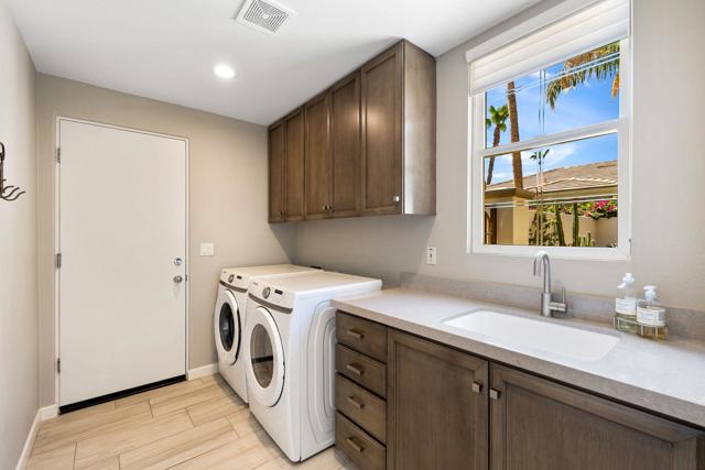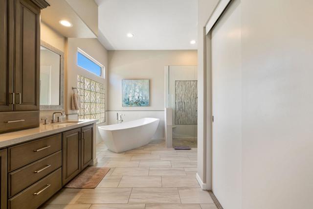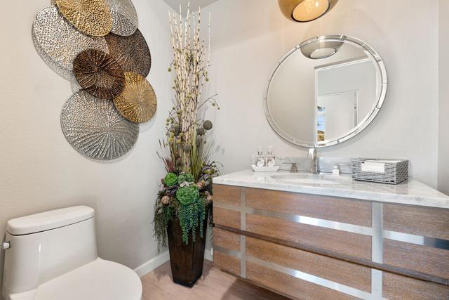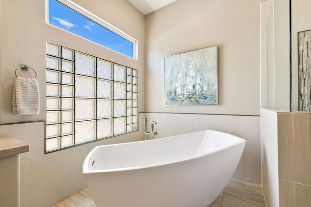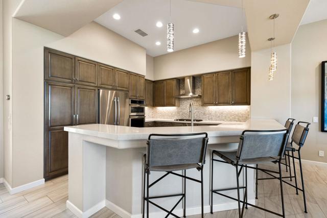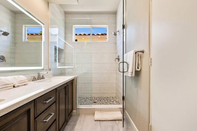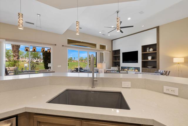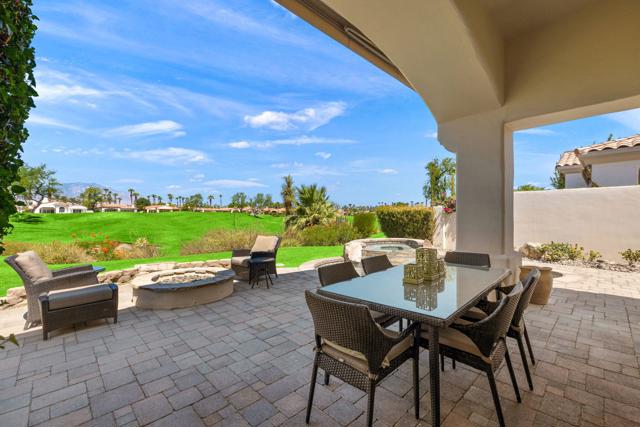 Welcome to this spectacularly remodeled Bougainvillea 1 at Indian Ridge Country Club, a showcase property offering 2,430 sq. ft. with 3 bedrooms and 3.5 bathrooms. Every detail of this home has been thoughtfully updated, from the paved driveway and desert landscaping to the fresh interior finishes, creating a residence that is truly move-in ready. Set against a backdrop of double fairway and San Jacinto Mountain views, this home is a desert retreat like no other. Enjoy unforgettable sunsets from your private patio featuring a dipping pool, spa, built-in BBQ, and fire pit, perfect for relaxing evenings or entertaining guests. Inside, modern elegance shines with quartz countertops, newly tiled showers, new flooring, and a serene primary suite designed for ultimate comfort. Additional modern upgrades include newer A/C units, Nest thermostats, remote door entry, and an air-conditioned epoxy-floored garage. Offered fully furnished per inventory, this home is the complete package. Located along the 5th and 6th holes of the Arroyo Course, this property pairs luxury living with resort-style amenities. Indian Ridge Country Club offers two Arnold Palmer signature golf courses, a state-of-the-art fitness center, tennis and pickleball courts, a full-service spa, and multiple dining venues. Don't miss your opportunity to own a slice of paradise in Palm Desert's premier country club community.
