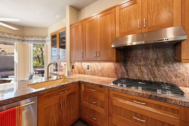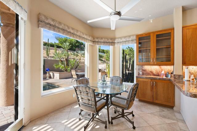 Located in South Palm Desert within the highly sought-after, gated Monterra development, this beautifully maintained 4-bedroom, 3.5-bathroom residence offers refined desert living with timeless style and comfort. Step inside to discover a spacious, open floor plan highlighted by high ceilings, elegant finishes, and abundant natural light. The delightful kitchen features premium appliances, custom cabinetry, and gorgeous stone countertops--perfect for entertaining or family gatherings. The great room flows seamlessly to the outdoor living area, creating an ideal setting for indoor-outdoor desert living. The primary suite offers a comfy retreat with a sizable bathroom, walk-in closet, and access to the backyard oasis. Three additional bedrooms provide flexibility for guests, a home office, or a media room. Enjoy the best of desert living in your private newly landscaped backyard, complete with a sparkling pool and spa, covered patio, and all designed for relaxation and entertaining. One of the only homes in Monterra that has the bonus of an extra large side garden that is perfect for entertaining or a wonderful children's play area. Set on a quiet cul-de-sac within the exclusive Monterra community, it combines privacy, luxury, and convenience--just minutes from world-class golf, dining, and shopping on El Paseo and the surrounding Palm Desert area.