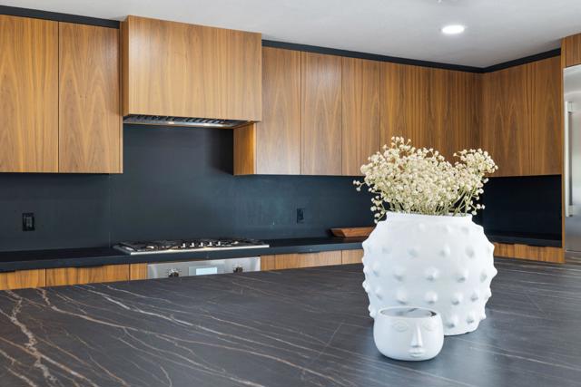 Modern Luxury Meets Desert CharmDiscover elevated living in this fully renovated and beautifully furnished retreat, ideally located in the coveted Silver Spur Ranch of South Palm Desert. This stylish four-bedroom, three-bathroom home was designed with intention--boasting premium finishes, vaulted ceilings, and a seamless blend of form and function.At the heart of the home, an expansive chef's kitchen showcases custom cabinetry, luxurious leather-finish countertops, and top-tier appliances. The oversized island offers both abundant storage and the perfect setting for entertaining. Throughout the interior, sleek tile flooring enhances the modern aesthetic, while all of the bathrooms also feature custom counters, cabinetry, and spacious tiled showers.Dramatic sliding glass doors open to a private backyard oasis with sweeping mountain and down-valley views. The low-maintenance landscaping, highlighted by stylish artificial turf, ensures beauty and convenience year-round. Whether hosting friends or enjoying a quiet evening under the desert stars, this outdoor retreat is designed to impress.Sustainable and serene, this solar-powered home is located on a quiet interior street and just minutes from El Paseo's boutique shopping, fine dining, and world-class golf. A perfect balance of desert elegance and modern convenience--your Palm Desert dream begins here.