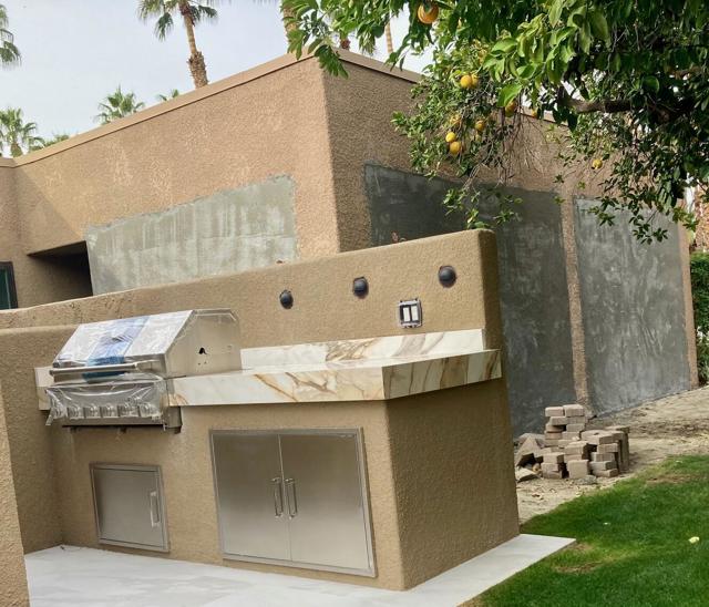 * IRONWOOD, prestigious location in South Palm Desert, close to the McCallum theater, El Paseo, and next to Living Desert*Elevated position boasting both Mt. Eisenhower & Oasis like water view through a huge opening to the East & South*Remodeled in 2024 with an expanded living room space converting an atrium, newly built garage, impeccable insulation, a new gas line embedded under the ground two feet for outdoor BBQ, removal of pillar on patio providing dynamic views of mountains, greenbelts, community pool & lush landscaping*Smart & sophisticated layout and staged with high end mid century light fixture and custom furniture*A very bright contemporary condo with beautiful citrus through every window