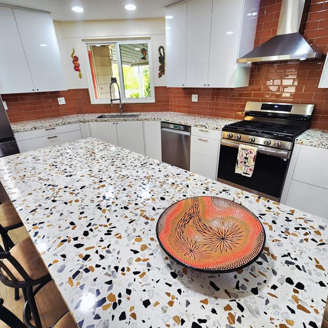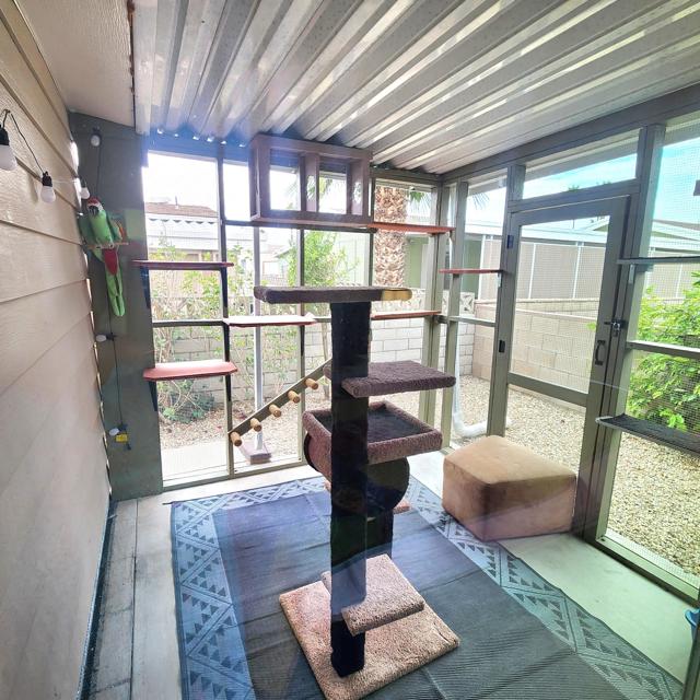 This newly renovated two-bedroom, two-bath residence exhibits elements of Mid-Century Modern design while integrating comfort, style, and attainable luxury. Originally constructed in 1980, the property underwent comprehensive remodeling in 2024, featuring numerous custom designer enhancements. The kitchen includes quartz countertops, a subway tile backsplash, stainless-steel appliances, modern cabinetry, pullout drawers, and soft-close hinges. Further improvements comprise dual-pane windows and sliding doors, upgraded interior doors, luxury vinyl plank flooring, new drywall, fresh paint, updated lighting fixtures, and ceiling fans. The spacious den provides an excellent space for entertaining guests. The primary bedroom is appointed with an en-suite bathroom, walk-in closet, and direct access to a private patio designed as a ''CATIO'' for feline companions. This property holds TAGS status, which may offer potential tax savings; please inquire for additional details. Palm Desert Greens Country Club is recognized among the region's leading and most desirable 55+ communities. Ownership of land is included, and the $400 monthly HOA fee encompasses 24/7 guard-gated security, cable television, internet, trash service, complimentary golf, and a variety of other amenities.