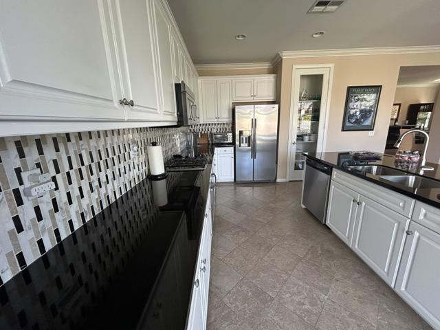 HUGE PRICE REDUCTION!! Impeccably Maintained, Move-In Ready Luxury Home with Owned SolarExperience comfort, style, and efficiency in this stunning move-in ready residence, thoughtfully designed for everyday living and elegant entertaining. This one-owner home features a split floor plan, gourmet kitchen, and spacious primary suite, offering both privacy and functionality.The chef's kitchen is a true showpiece--complete with a gas range, granite countertops, custom cabinetry with pull-out drawers, a center island, and pantry. The formal dining area opens gracefully to the living room, highlighted by a cozy fireplace, creating an ideal space for gatherings.The primary suite provides a serene retreat with a spa-inspired bathroom, dual vanities, granite counters, and a generous walk-in closet.Step outside to the expansive backyard, perfect for entertaining or relaxing. Enjoy a covered patios, desert landscaping for low-maintenance beauty, and a private putting green--ideal for hosting guests or enjoying peaceful desert evenings.Additional highlights include owned solar panels for exceptional energy efficiency and meticulous upkeep throughout--every detail has been maintained to perfection.This exceptional property truly combines luxury, livability, and value in one outstanding package.