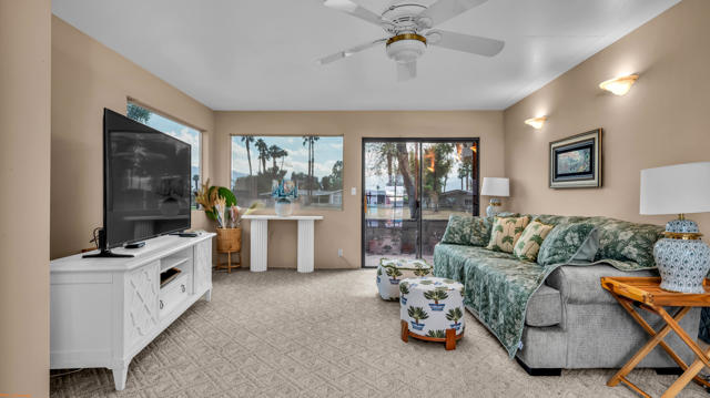 Fantastic Opportunity in Portola Country Club!This exceptionally spacious 2,007 sq. ft. home situated on a 433A permanent foundation, this home is financeable with FHA and VA loans, offering flexibility and peace of mind for buyers. Home offers a rare combination of golf course and lake views plus a private covered courtyard at the heart of the property--perfect for morning coffee or evening relaxation. The open-concept floor plan features a formal dining area and a bright living room with a cozy fireplace and dual outdoor access. The third bedroom has been converted into a den, ideal for a home office, guest space, or media room. The primary suite includes a walk-in closet and a large en suite bath with a soaking tub and separate shower. Additional highlights include dual-pane windows throughout and a 2-car garage with extra space for storage or even a golf cart.While this home may need a little TLC, it's brimming with potential--an opportunity to make it truly your own in one of Palm Desert's most desirable 55+ communities.Located in the heart of Palm Desert, Portola Country Club is a gated, active adult community known for its beautifully maintained grounds, friendly atmosphere, and unbeatable amenities. Enjoy unlimited golf on the private 18-hole par-3 course, plus access to three pools and spas, pickleball, tennis, and bocce ball courts, a fitness center, and a well-equipped clubhouse hosting a wide range of social activities and events. With low HOA fees that include golf, cable, Wi-Fi, and trash, and you own the land, this community offers exceptional value and lifestyle.Come experience Portola Country Club--where every day feels like a resort getaway and your next chapter awaits!