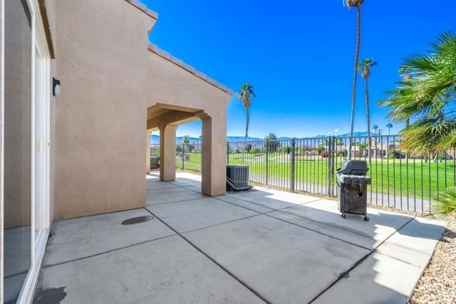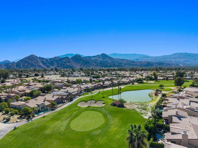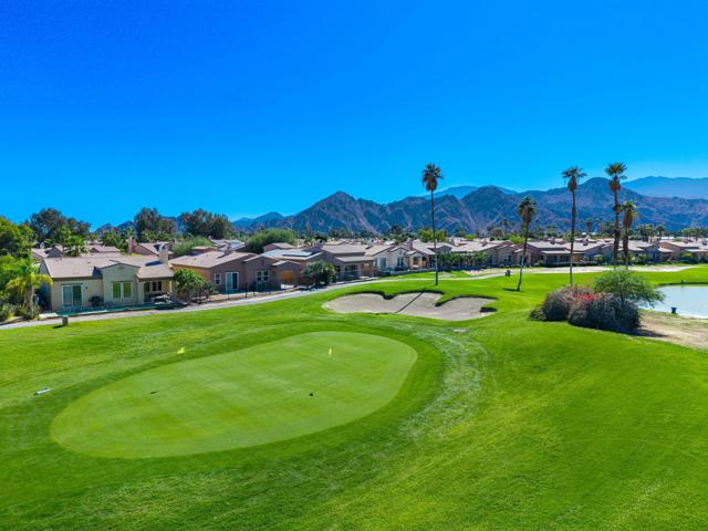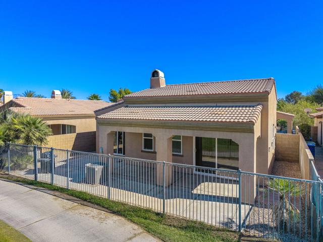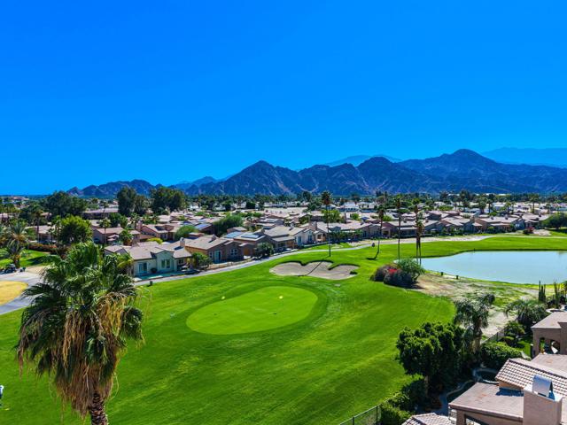 Call James Guillermo 760-449-1345 to see this, Elegant Golf Course Home in Palm Desert Country Club. Perfectly located between both school districtsCome practice your putting in your own back yard!! Experience the best of desert luxury in this stunning 3-bedroom, 3-bath home offering just under 1,800 sq. ft. of thoughtfully designed living space. Built in 2010, this residence features, Solar Power you own, beautiful mountain views, an open floor plan, abundant natural light, stainless steel appliances, including bullnose granite countertops, a kitchen island, like new AC /Condenser ( Installed 2023 - 8yrs left on warranty ) and much much more. Enjoy owned solar power for exceptional energy efficiency, draught resistance landscaping and peace of mind. Step outside to your backyard and take in breathtaking golf course and mountain views, perfectly situated on the 10th hole. With the community pool just around the corner and the clubhouse only steps away, this home offers the perfect blend of elegance, comfort, and resort-style living. Move-in ready and waiting for you!
