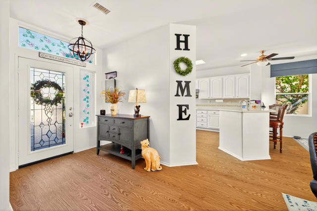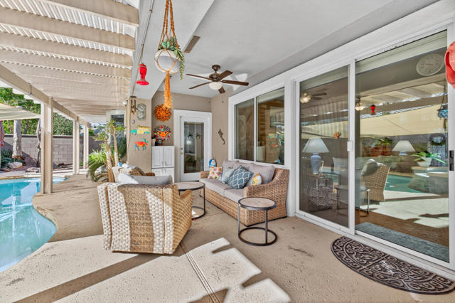 Wonderful St. Croix in Sun City Palm Desert. So many upgrades they are listed in Documents. Refreshing Pool & Spa with Shade Cover in backyard next to covered Patio with Misters. Double doors lead to Library; pocket door to Office. Upgraded maple cabinetry in Kitchen & Baths. Primary bedroom has the Bay Window plus French Door to backyard. Laundry Room includes a convenient sink. Extended Garage in both length & height. Solar System is leased & assumable (see Documents). Upgraded baseboards. Sun City Palm Desert was Del Webb's ''Jewel in the Crown'' & no wonder what with 2 Golf Courses, 3 Clubhouses, each with pool & spa, indoor Walking Track, huge Ballroom & Billiard Room, Tennis Courts & Pickle Ball Courts, Card Rooms/Game Rooms, Craft Rooms, Activities galore. A Golf Cart is included with sale.