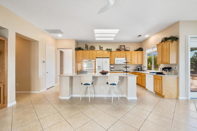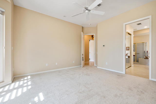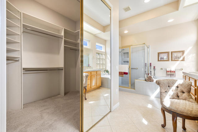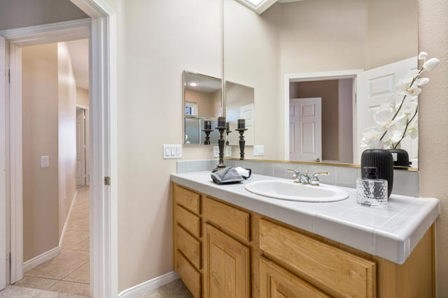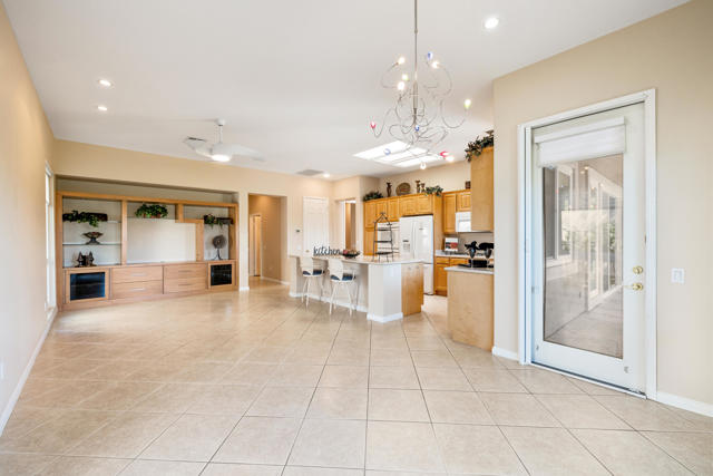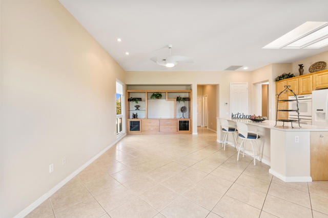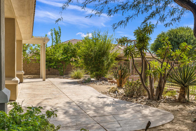 Welcome To The Life Style Of Del Webb Sun City.This Beautiful Pristine ''Monaco Estate Model'' situated on an Elevated Lot on the 15th. Hole of the San Gorgonio Golf Course, South Exposure, Stunning Sunsets, and on one of the most desirable streets, centrally located near all the clubs.This Extended Monaco Floor Plan Features: 3 Bedrooms, and 2 3/4 Baths.The 3rd. Bedroomhas the option of a Den/Office. Extended Primary Suite has a Double Vanity, and Custom Walk-In Closet, Extended Guest En-Suite Bedroom has a Private Entry within the Gated Courtyard, Great Room with Formal Dining Area, Chef's Kitchen with Island, and Adjacent Oversized Living Space with Breakfast Nook, and Built-In Entertainment Center, Skylight in kitchen, Spacious Laundry Room in house,Tandem or Side by Side Parking in Main Garage with Golf Cart Garage, The Garage has off the floor storage racks, (The Following Is A Re-Cap With Additions Describing All The Wonderful Features This Up-Graded Property Has To Offer)Elevated Lot on Golf Course, Galvanized Fence Enclosure, Covered Patio, South Exposure,Panoramic Views of Golf Course and Mountains, Stunning Sunsets, Enclosed Dog Run with Artificial Turf, Extended 2 Car Garage with off the floor Storage Racks, and Golf Cart Garage,220 Outlet to charge EV, Daikin Mini Split 2018,Lift Master WIFI Garage Door Opener with Keypad 2021, Entry Foyer, Open Great Room with Dining Area, Primary Suite with Double Vanity and Walk-In Closet, Extended Guest En-Suite with Private Entry within the Gated Courtyard, The 3rd. Bedroom can be Den/Office, Chef's Kitchen, Island, Breakfast Nook and Adjacent Oversized Living Room with a Built-In Entertainment Center, Interior Freshly Painted Custom Color: Floating Feather in Velvet Finish, New Carpet, 18 Inch Tile, Energy Efficient Milgard Windows and Sliders 2017, Vanishing Screens Front Door and Patio Door, Hunter Douglas Window Treatments, Custom Shutters, High Ceilings, Recessed Lighting, Re-Circulating Hot Water, Spacious Laundry Room in house, Comfort Height Toilets, 50 gallon Water Heater 2024, Complete Irrigation System and Timer 2023, HVAC System 12/2016, Decorative Overlay on concrete Front & Rear Maintained every 5 years, Large Profile House Address Numbers, French Drains from Rear to Street, Exterior Hose Bibs replaced 2024, Property is Hardwired with (Command One Security System)Meyer Lemon, Pink Grapefruit and Pomegranate Trees, and much more. The Home Is Virtually Staged