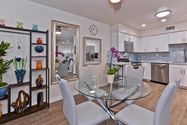 Presenting 1221 Sunflower Lane. A Light-Filled Retreat with Expansive Private Garden in a Resort-Style Community. This beautifully updated 2-bedroom, 2-bath home welcomes you through a frosted glass entry door, filling the living space with natural light. The freshly updated kitchen features bright white cabinetry, solid surface countertops, a stunning tiled backsplash, and a convenient pantry. The primary suite is a true retreat with garden access, a newly redone bath boasting a gorgeous tiled shower, and a large walk-in closet. The hallway to the bedrooms is lined with custom built-in cabinets, offering abundant storage. Sliding glass doors in the living area open to an expansive private patio and an oversized wraparound garden, where you'll find prize-winning roses, newly planted trees, built-in seating, and a covered patio for year-round enjoyment. A private gate provides direct access to a path leading to the nearest pool and spa. Additional features include indoor laundry area with side-by-side washer & dryer, spacious second bedroom and bath for guests, private single car garage, and fresh landscaping with multiple outdoor living spaces. Beyond the home, enjoy a vibrant community lifestyle with 8 sparkling pools and spas, both pickleball and tennis courts, basketball courts, a putting green, and a pet area -- all just steps away. This home offers the perfect balance of comfort, charm, and resort-style living--ready for you to move right in.