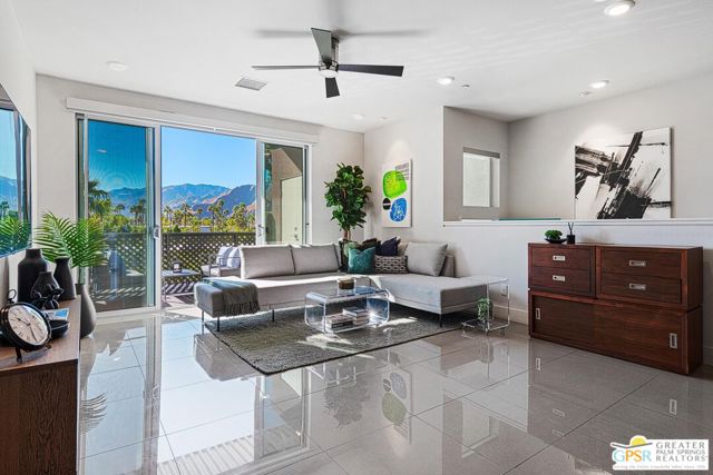 Discover modern luxury and incredible views at 140 The Riv! This 2-bedroom, 2-bathroom condo spans 1,226 square feet and features sleek porcelain tile floors, a stylish kitchen with a spacious island, and owned solar with 10 panels for energy efficiency. Step onto your private balcony and take in the breathtaking South and West views of the San Jacinto Mountain range, or relax in the beautiful community pool and spa, which also offers stunning mountain views. This residence blends contemporary design with the serenity of nature, all within an exceptional community setting. Don't miss this opportunity to make this your desert paradise or turn-key investment property.