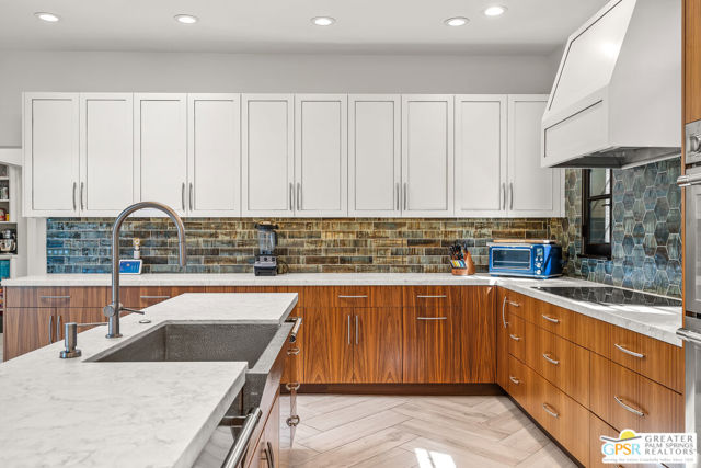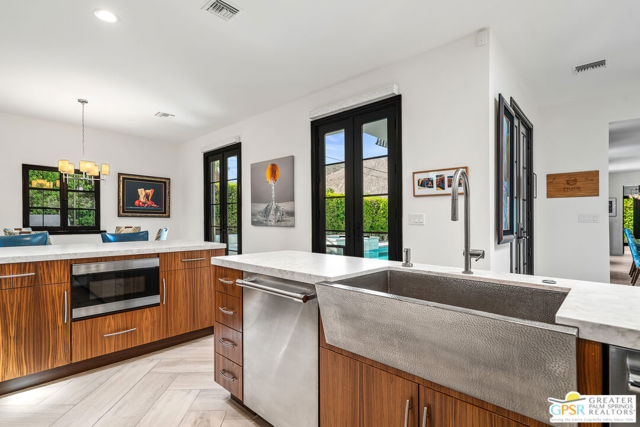 Reminiscent of a European villa/estate with a contemporary vibe, this thoughtful 100% renovation exceeds expectations & exudes sophistication & panache. Voluminous spaces, stellar continuity and handsome appointments. This walled and gated estate offers numerous exterior entertaining spaces with a firepit and a poolside fireplace. The great room offers stunning built-ins & wonderful fireplace. The incredible chef's kitchen is fully outfitted with Thermador appliances including a steam oven, top of the line induction cooktop, 2 dishwashers, custom cabinetry, gorgeous quartz countertops and exquisite fixtures. Formal dining room offers a custom 14' bar with wine cooler, beverage fridge and ice maker. The lavish Primary suite rivals the finest of 5-star hotels with its own fireplace, patio access and oversized spa like bath complete with heated flooring. Oversized laundry and pantry. Special updates include 13 sets of new custom manufactured Anderson French doors, owned solar with 2-13kwh back up batteries, California Closets, integrated Sonos system and a fantastic outdoor kitchen featuring a Hestan grill, Evo cast iron griddle and prep sink. The updated pool and spa include a new hybrid elec/gas heater. Truly a one-of-a-kind property not to be missed.