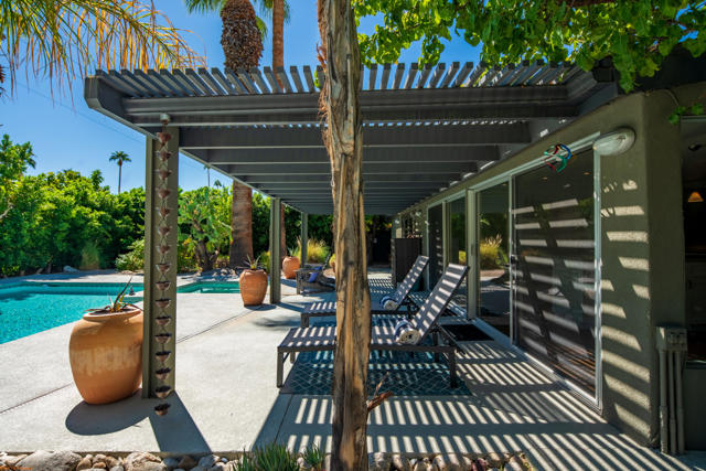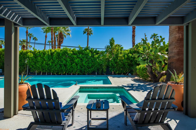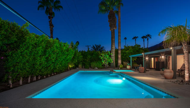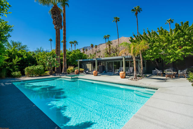 Tucked behind private gates and lush greenery in Tahquitz River Estates, this beautifully maintained 3-bedroom, 3-bathroom home offers nearly 2,000 square feet of seamless indoor/outdoor living. Sunlight fills the open floor plan, which features spacious living and dining areas, a well-equipped kitchen, and thoughtful updates that blend classic Palm Springs charm with modern finishes. Each bedroom is paired with a nearby bathroom, providing a private and practical layout for residents and guests. Step outside to your backyard oasis, where a large pool and spa create a resort-like retreat, surrounded by mature landscaping, multiple seating areas, and clear views of Mount San Jacinto. Designed for both relaxation and entertaining, the space combines serenity with private seclusion. Sitting on fee land (you own it) with no HOA, this home places you just minutes from the vibrant heart of Palm Springs, with its renowned restaurants, boutique shops, galleries, and entertainment at your doorstep. Ideal as a full-time residence, weekend getaway, or high-demand vacation rental. (As of September 18, 2025, Tahquitz River Estates is well below the 20% vacation rental cap, further enhancing its appeal.) Experience the ultimate Palm Springs lifestyle, combining comfort, style, and unmatched views in this private desert retreat.