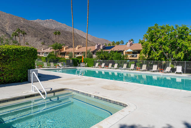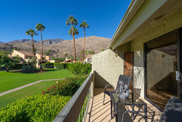 Offering exceptional value - This 1,694 sq/ft condominium is situated in the highly sought-after Indian Canyons neighborhood of South Palm Springs. Designed with an open concept floor plan that seamlessly connects the indoor and outdoor areas together. Featuring abundant natural light inside and scenic views out, it's a perfect fit for both relaxation and entertaining guests.The main floor's notable highlights include gas fireplace, sunken living room and a kitchen with breakfast bar, ample storage and counter space, tile and carpet floors, powder room, laundry and deep garage. The second floor has two en-suites with the spacious primary hosting a deck with amazing mountain views, a gas fireplace, cedar closet, walk in closet, double sink and separate water closet. Association amenities - 2 pools, 2 spas, 2 tennis courts, updated club house and workout room. Cable included. Location and a well laid out floor plan make this an amazing home.