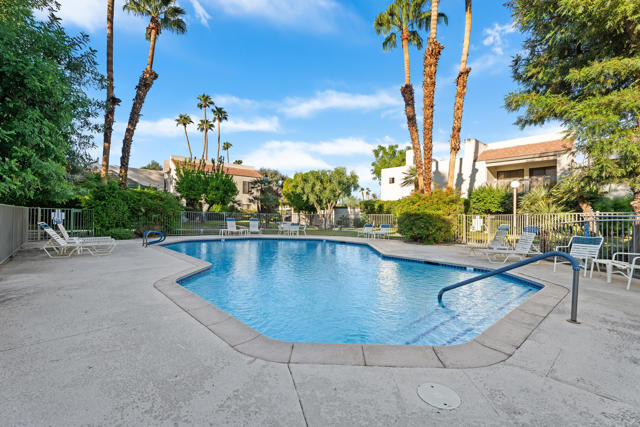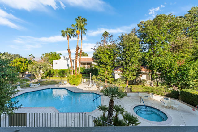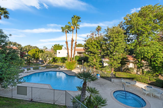 This 2 bedroom, 2 bathroom, 1,034 sq. ft. condo in the desirable Riviera Gardens community offers the ideal Palm Springs lifestyle. Smartly updated and move-in ready, this property sits on fee land (no land lease) and presents a fantastic investment opportunity.The kitchen has been upgraded with a brand-new refrigerator, newer appliances, granite counters, furniture-grade cabinetry, and a stylish backsplash. The convenience of inside laundry with newer stackable appliances adds to the functionality of the home. Other updates include newer carpet, fresh paint, and a primary suite enhanced by a newer tile shower. The second bedroom provides flexibility to serve as a guest space, home office, or game room.A spacious balcony patio extends the living area and is perfectly designed for entertaining, featuring a natural gas barbecue (no propane required) and showcasing panoramic views of the pool, spa, and surrounding mountains. The location within the community is exceptional, just steps away from both the pool and spa.The grounds of Riviera Gardens continue to evolve with a thoughtful transition to desertscape landscaping, balanced by a mindful approach to preserving and caring for an impressive collection of mature fruit trees, including fig, orange, grapefruit, lime, lemon, key lime, mandarin, and olive, which are located just outside the door. Parking is convenient with a dedicated covered carport located only steps from the unit, as well as ample guest parking for visitors.This home is being offered fully furnished at no additional cost with the right offer, making it truly move-in ready from day one. Riviera Gardens is a secure, well-situated community surrounded by million-dollar mid-century modern neighborhoods. Its location is only minutes from downtown Palm Springs and within 10 miles of Interstate 10, offering easy access to Los Angeles and beyond. Whether you are looking for a full-time residence, a vacation retreat, or a rental investment, this property combines exceptional value with the best of desert living.