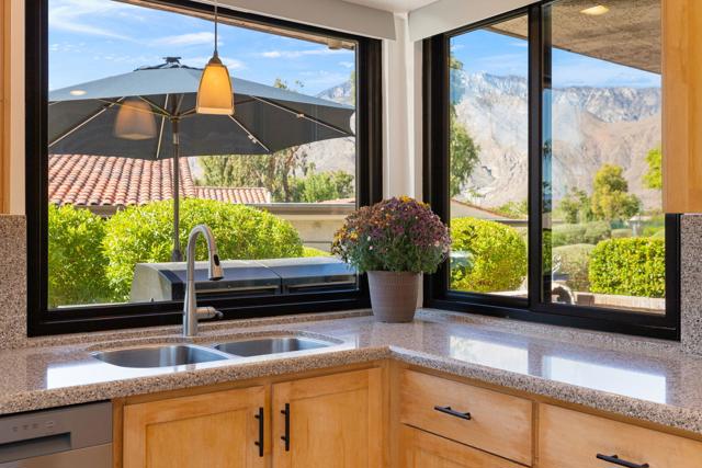 Rarely available 3-bedroom condo in the desirable central Palm Springs community of Sunrise Racquet Club, blending original architectural details with thoughtful updates. This home showcases one of the original model floor plans with its signature atrium, classic wet bar, and fireplace, while featuring modern enhancements. Some of the recent upgrades include fresh paint, brand new quartz bathroom counters, brand-new stainless steel kitchen appliances, an upgraded fireplace, brand-new fans and fixtures, and a whole-house water softener. The spacious layout captures stunning mountain views from the kitchen and living room windows, creating a dramatic desert backdrop, while the private back patio is perfect for barbecues, relaxing, and entertaining. Residents enjoy resort-style amenities with 6 pools and spas, tennis courts, racquetball, and pickleball. An attached garage adds everyday convenience. The community's 14-day rental allowance provides excellent income potential, making this a rare opportunity for full-time living, a vacation retreat, or an investment property in the heart of Palm Springs. All of this in a very central location--just minutes to downtown, the casinos, restaurants, shopping, and nightlife.