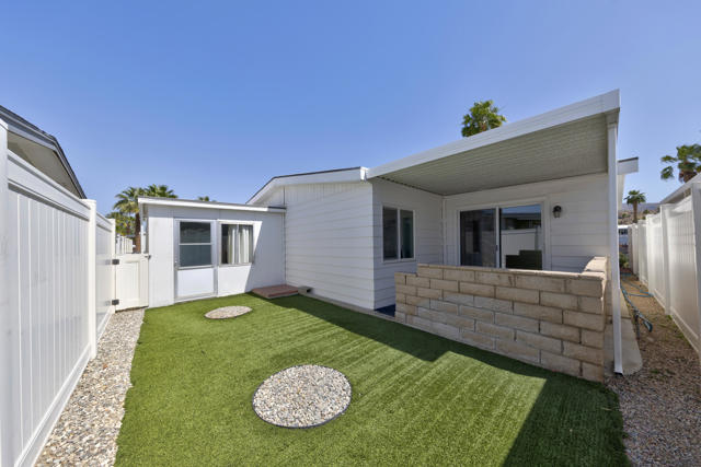 This Large Home with a hard-to-find Private Backyard now has An Even Better Price! Welcome to Eldorado Palms Estates, a 55+ gated community where you Own The Land & can enjoy Multiple Pools & Spas, Tennis and a Full Fitness Center all with Extremely Low HOA's. This spacious 1,488 sqft home has been Meticulously Cared for and has had several energy efficient updates including a New HVAC installed approximately 4 years ago, Dual pane windows installed throughout in 2018 and a Roof replacement in 2017, all to ensure affordable desert living. Enjoy the added privacy & curb appeal provided with the newer, low maintenance Vinyl Fencing that surrounds the property. Included are a newer dishwasher, refridgerator and even a Water Filtration System! The upgrades go on-and-on... There is a 3rd room that has access from both the guest bedroom as well as from the backyard- so many possible uses - maybe an office or an extension to your private outdoor living space?!?! El Dorado Palm Estates is conveniently located near great restaurants and shopping at Target and Trader Joe's. Tranquil living at it's Best in South Palm Springs!