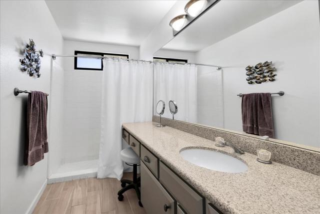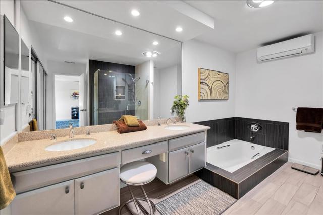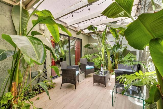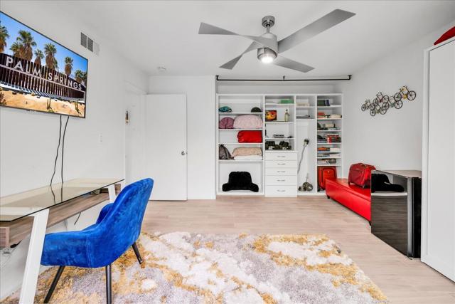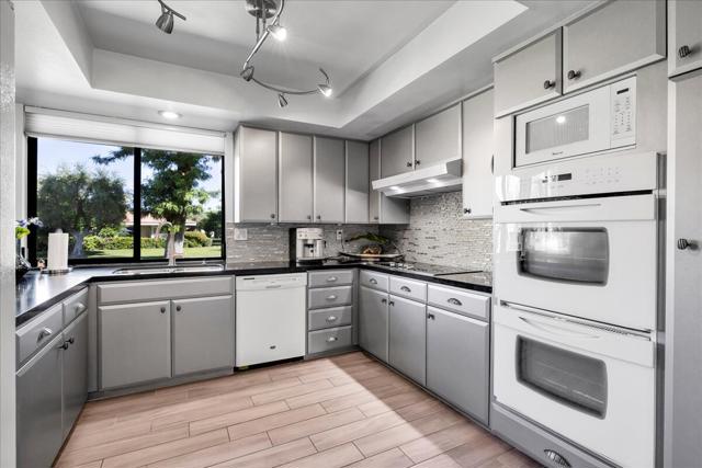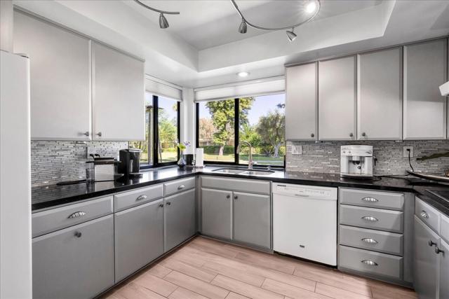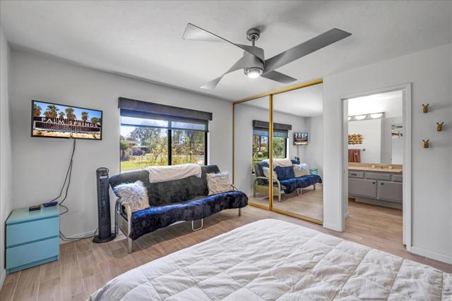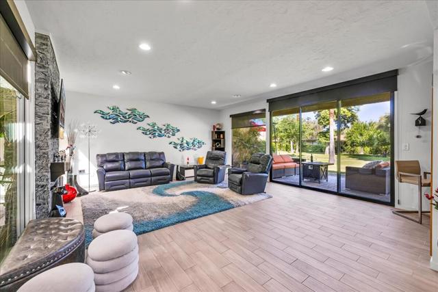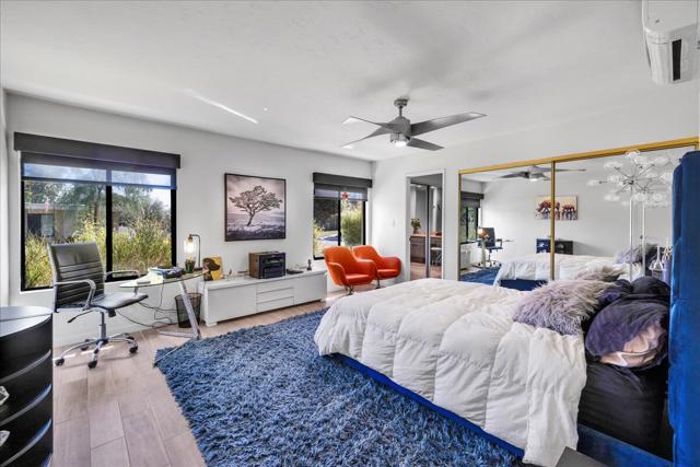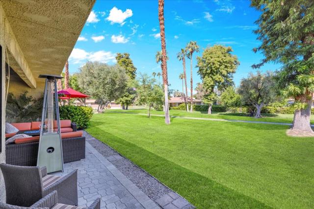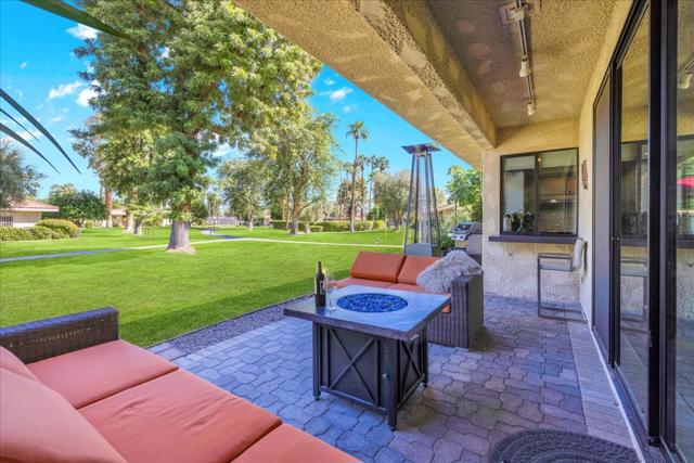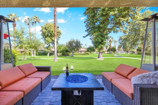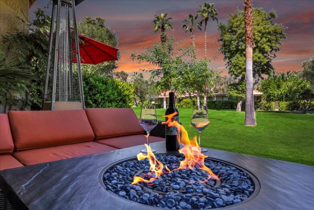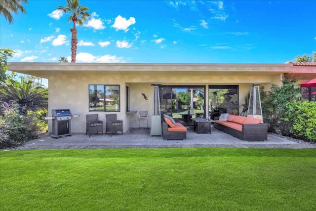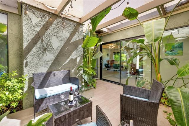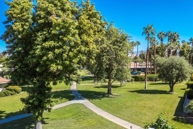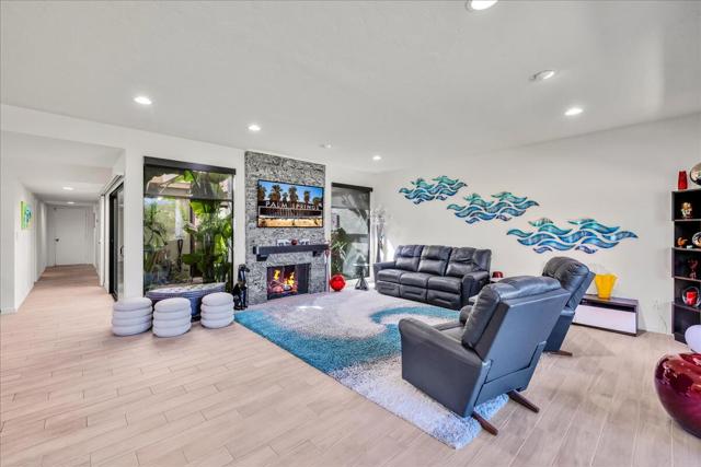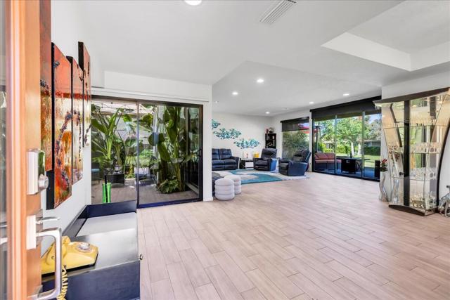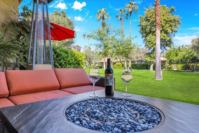 A true oasis in the desert! Back in the days when Bing Crosby & Frank Sinatra were in the area, rumored to be hanging out at the Purple Room just up the street... Sunrise East was created as 130 modern styled homes on a sprawling 44 acres, with six pools and spas for relaxing your way! Yes, six rather private pool & spa enclosures, or for the more active types, check out the grand tennis courts (now with pickle ball too). Sunrise East has worked hard over the years to strike a balance of greenbelts with lush hedges and old-growth trees, while also working to reduce it's water footprint, and the result is simply gorgeous! Come explore the well lit sidewalks & trails within the serene park like settings of this true oasis! Now this 3Br/2Ba is an end unit condo on an elevated lot within the center, southwest quadrant, quiet yet in the center of it all. This home embodies the floor-to-ceiling panes of glass and open floor plan that were the hallmarks of midcentury homes, complete with the tropical plant-lined atrium! Lots of windows to let the sun shine in, bright and open, or of course the custom shades too for when you desire a little privacy. Key features are the large great room with recessed lighting, stone fireplace, and even an entertainment bar ...plus the three large bedrooms, rather large baths, with the third bedroom offering flexibility as an office/den and guest room (murphy bed included). Huge custom closets in each room, and ample storage throughout. The entire home has been remodeled, with grey wood-grain porcelain tile running throughout the home, plus black quartz or multi-colored granite countertops, and unique silver cabinetry too. And of course, all the structural upgrades you would expect, with all dual-pane windows & doors, dual AC systems (mini-splits added for master suite & attached garage), whole-house water filtration system, and a host of other goodies. All new roof installed late 2021. And did we mention that this home is being offered 'partially or turnkey furnished' at no additional cost?! Not required, but you could just bring a change of clothing and a toothbrush, and then just settle right in :). Whether you are relaxing on the back patio with friends, or privately enjoying that screened atrium, you are going to love all of the options you have right here. EASY TO SHOW, COME SEE US TODAY!!