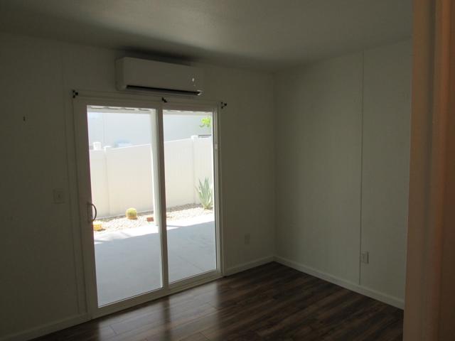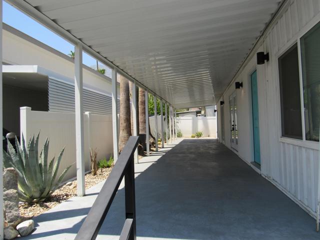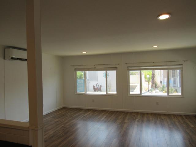 Bright, open and impressively upgraded, this turnkey home is located in the heart of Palm Springs Mobile Club in South Palm Springs. Showcasing the attributes of a 1969 Royal Lancer, the fully renovated residence has everything needed to enjoy carefree indoor/outdoor living. An expansive covered lanai creates a welcoming vibe and provides the ideal spot for entertaining friends and neighbors, enjoying a cocktail after sunset, and simple relaxation. White vinyl fencing, mature plantings, refreshed landscaping with newer irrigation, and graceful palm trees embrace the homesite, which also features a covered carport for maximum convenience. Indoors, large dual-pane windows, French doors and sliders allow natural light to illuminate living areas that extend approximately 1,200 square feet. Enjoy a spacious living room with neighborhood views, a dining room with access to the patio, two bedrooms and two stylish baths. Generously complementing mealtime and party time, the open kitchen shines with newer stainless-steel appliances, glossy black countertops, white Shaker cabinetry, a full tile backsplash, and a door to the carport. Both bedrooms open to the patio, baths display vessel sinks, interior laundry is included, and closets feature built-in shelving. Every detail has received special attention, including woodgrain plank flooring, recessed lighting, ceiling fans, newer interior doors, and newer drywall and trim. Behind the scenes awaits all-new plumbing and electrical systems, newer insulation, an updated water heater, and multi-zone high-efficiency mini-split heating and cooling systems. Residents at Palm Springs Mobile Club enjoy a gated setting with breathtaking mountain views, no age restrictions, and a location protected from wind. A freshly renovated clubhouse reveals a pool, spa, fire pit, billiards room, lounge, gym and kitchen. Homeowners also appreciate the advantages of an enclosed dog park, shuffleboard court, and a full calendar of fun-filled social events. Miles of scenic hiking trails await in Indian Canyons, shopping centers are nearby, and downtown Palm Springs' restaurants, galleries and clubs are moments from home. Space rental is $1,250 per month and includes water, trash and sewer. Schedule your private tour today, and discover the ideal blend of classic Palm Springs style and modern resort living