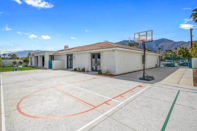 This luxury compound has a remodeled interior, oversized Pebble Tech pool and spa, Barbecue area, privacy and security features that make it a real paradise for both relaxation and entertaining. Stunning sunsets and mountain views are endless. There are 6 bedrooms and 4.5 bathrooms and one powder room outside. There are two bedrooms and one bath, and large game room that were recently added in 2024/2025.There's a Solar system, putting green, pickle ball court, game room, & lotsa open space. The large, gated RV area and the driveway can accomodate 10-15 cars or more! What a bonus!There are privacy/blackout & electronic shades throughout. This home's interior design was inspired by local designers and artists. Furniture and accessories negotiable. Buyer to verify and satisfy self with Square footage of living areas and all permits for new additions. Also, Buyer to verify with city of PS if this property can be used as a short term rental.Currently a 2 car garage with RV access and enough space for 12 cars. Seller can convert permitted game room back to another 2 car garage making this property a 4 car garage HOME!Seller would consider removing wallpaper and painting.